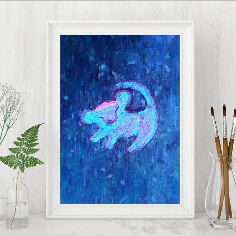 Малыш Лев Симба логотип картина маслом холст плакат мультфильм детская комната настенные художественные принты для детской комнаты храбрость Картина декор стен