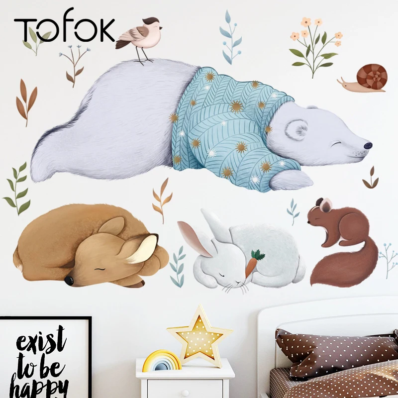 Настенные самоклеящиеся наклейки Tofok сделай сам для сна, медведя, оленя, детской комнаты, детской комнаты, настенные наклейки для украшения дома, холодильника, кабинета