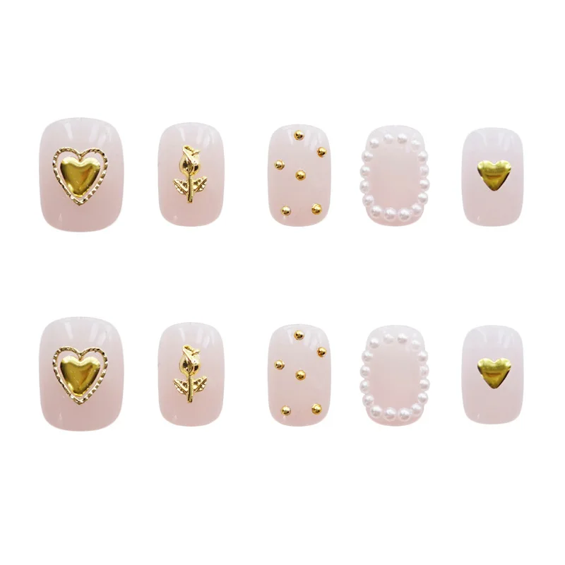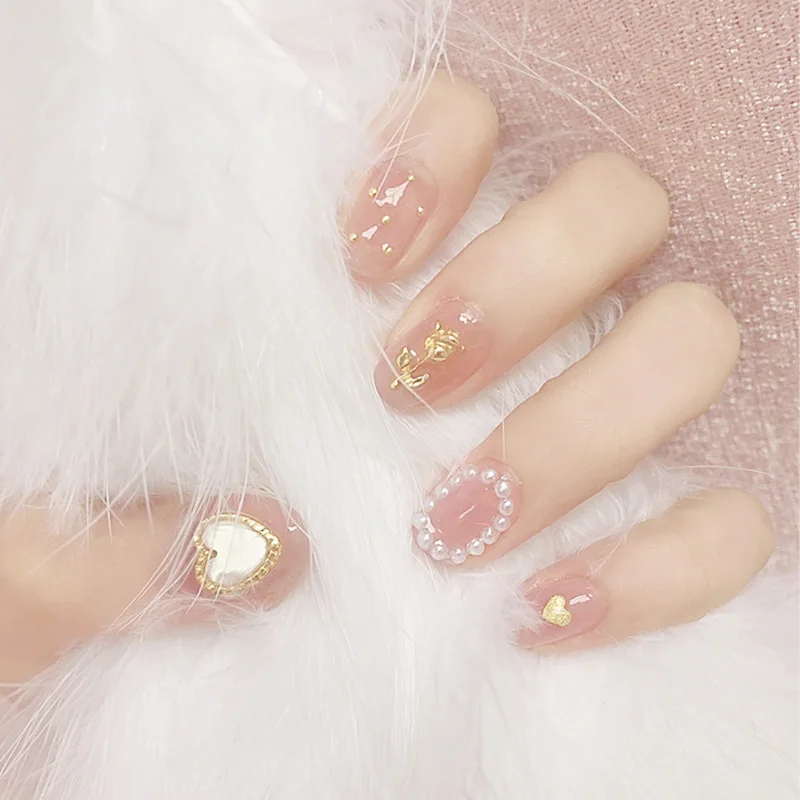 24 шт.кор. в виде сердца и с цветочным узором из роз, дизайн накладные ногти нажмите на жемчуга подходит сказочное платье для девочек украшения носимых готовой