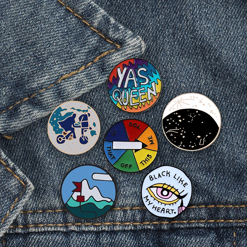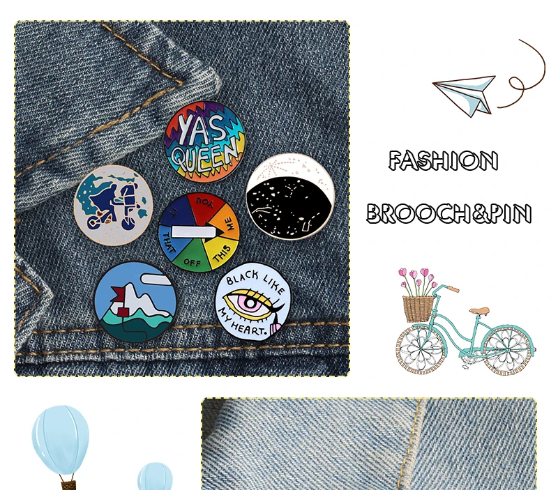 Броши-глаза круглая эмалированная булавка, рулетка с бантом, летающее небо, звездное небо, рубашка, сумка, шляпа, этикетки, брошка мультфильм, мужские и женские украшения