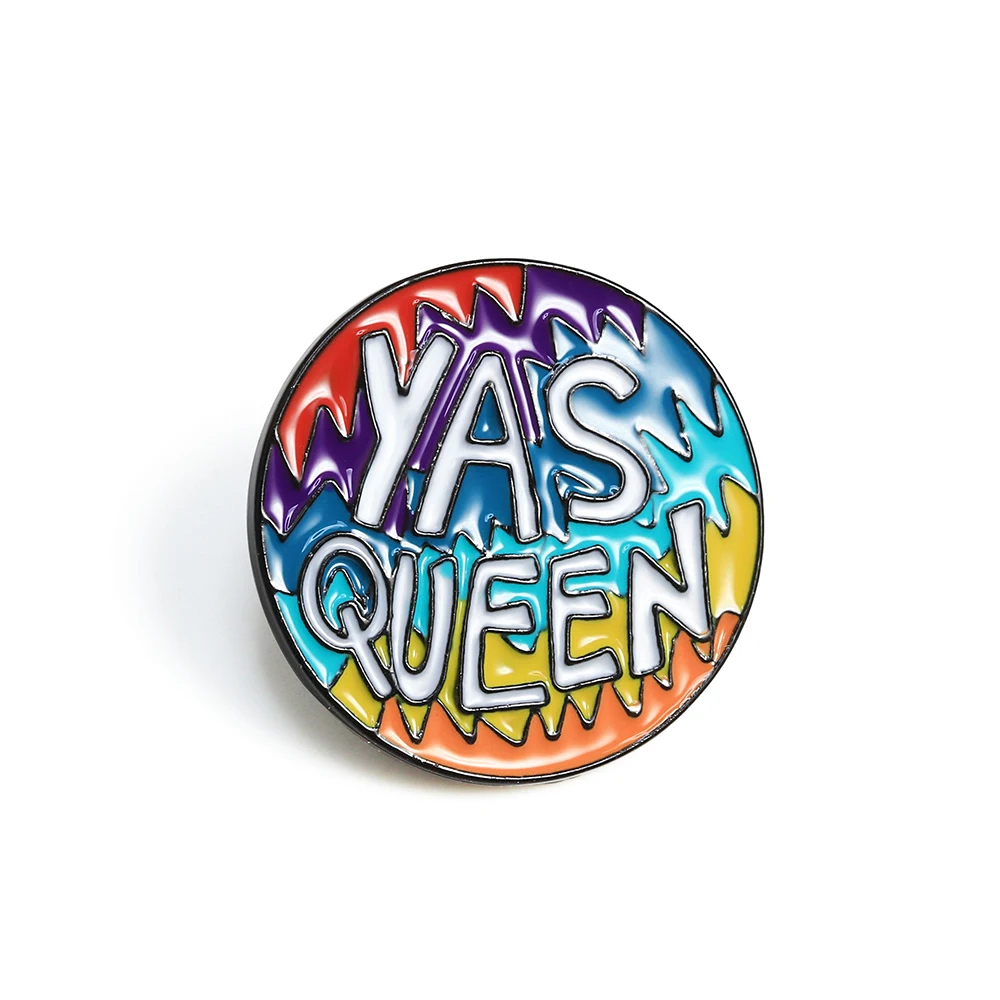 Значки YAS QUEEN радужные круглые, металлическая брошь с ярлыком, э...