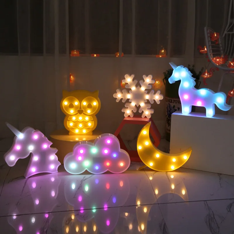 Милый светодиодный Фламинго Единорог ночник шатер знак ананас какту...