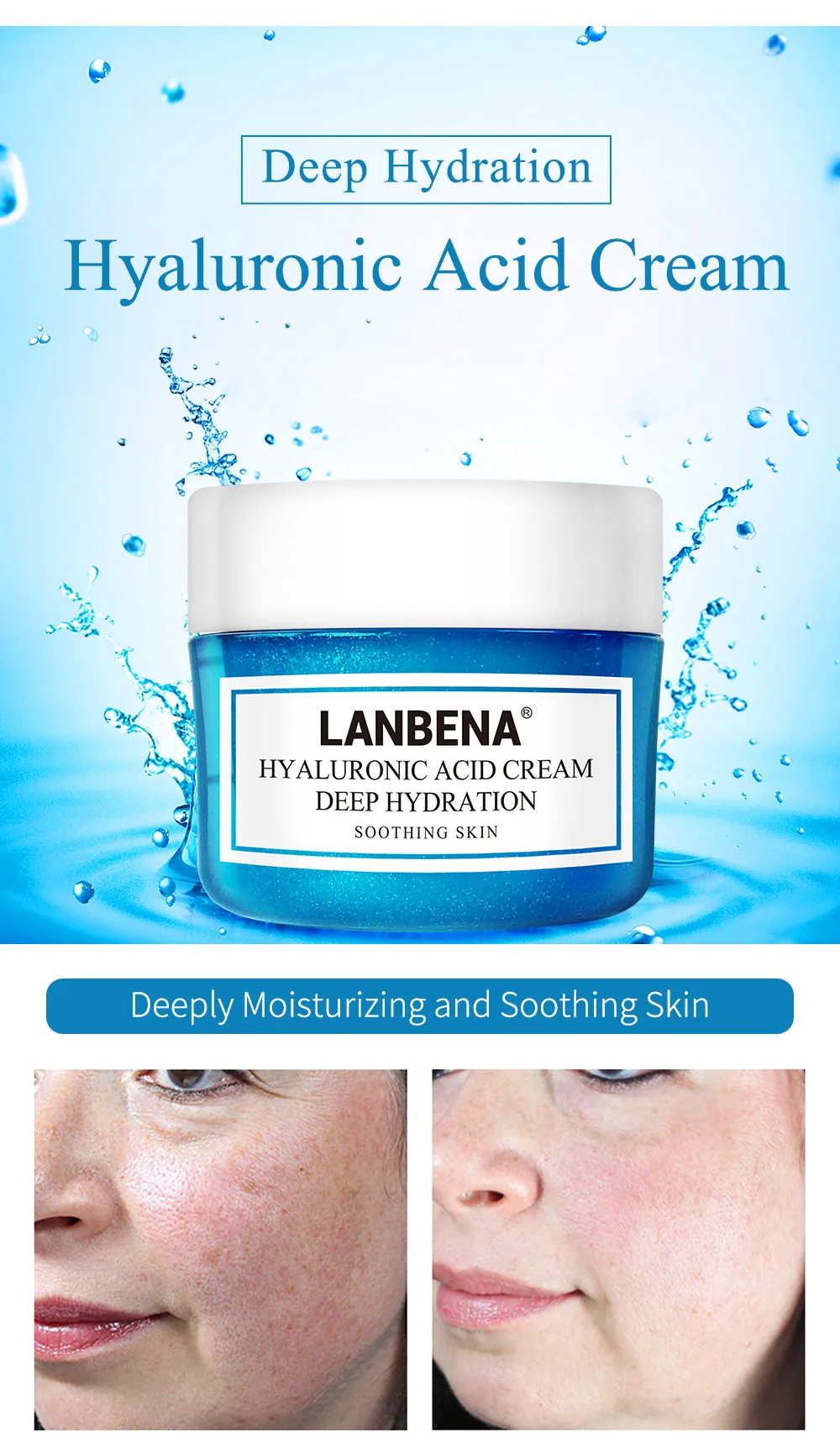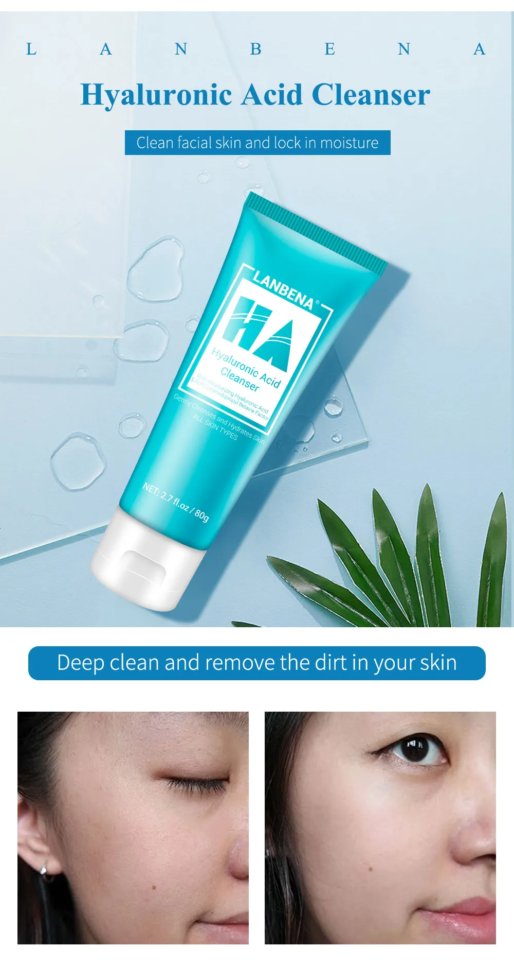Увлажняющий крем для лица с гиалуроновой кислотой LANBENA, увлажняющий крем для глаз, очищающее средство для лица с тонкими линиями, для поддержания PH баланса кожи