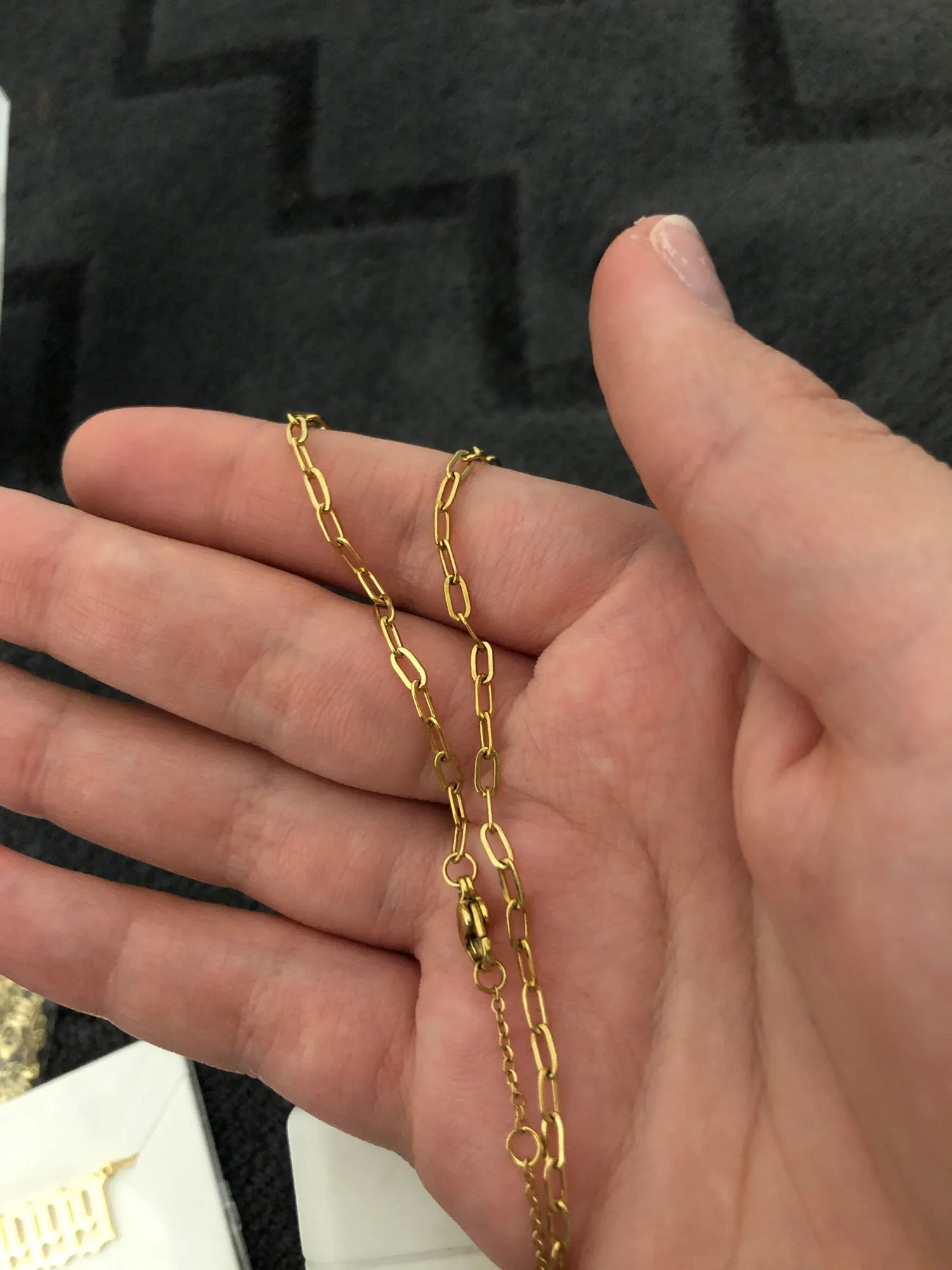 Идеальная цепочка. Золото не блестит как дешёвая бижутерия, идеально смотрится на шеи. Я в восторге. Посылочка шла в Польшу 2 недели, что можно сказать очень быстро. Можно было отслеживать посылку, продавцу спасибо за такой красивый товар и за низкую цену. Идеальная :)