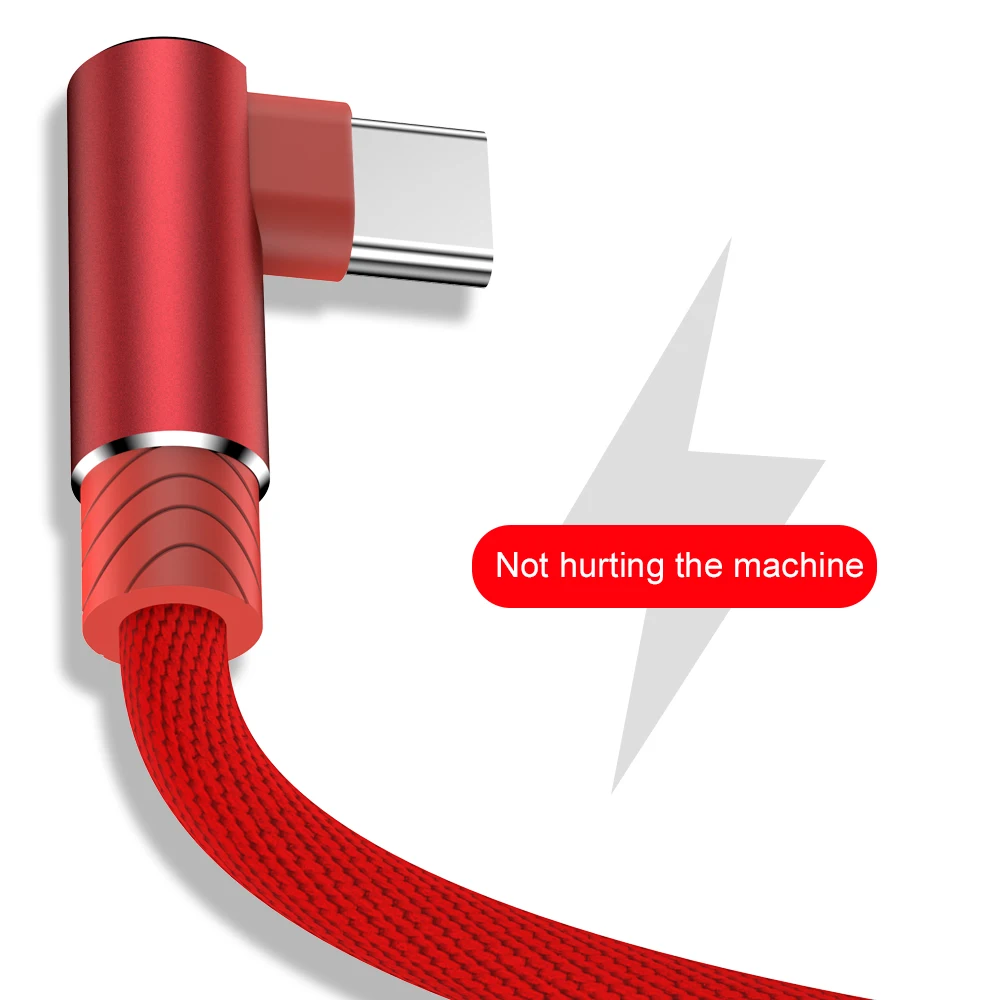 1 м 2 м 3 м 90 градусов данных usb type C зарядное устройство кабель для Samsung Galaxy S8 S9 Plus huawei Xiaomi type-c Быстрая зарядка длинный провод шнур