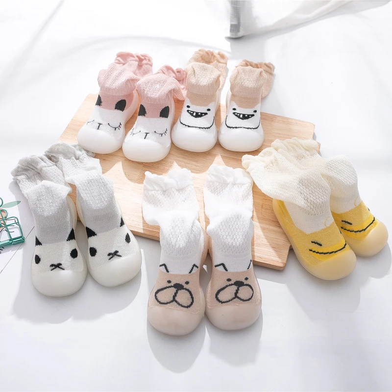 Летние противомоскитные носки для маленьких девочек, милые хлопковые чулки, нескользящая резиновая подошва