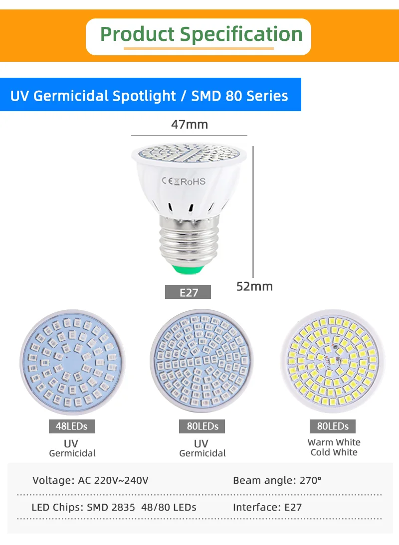 Страна: DE Emitting Color: UV series 80leds E27 Доставка: Standard Shipping 26.04.2021