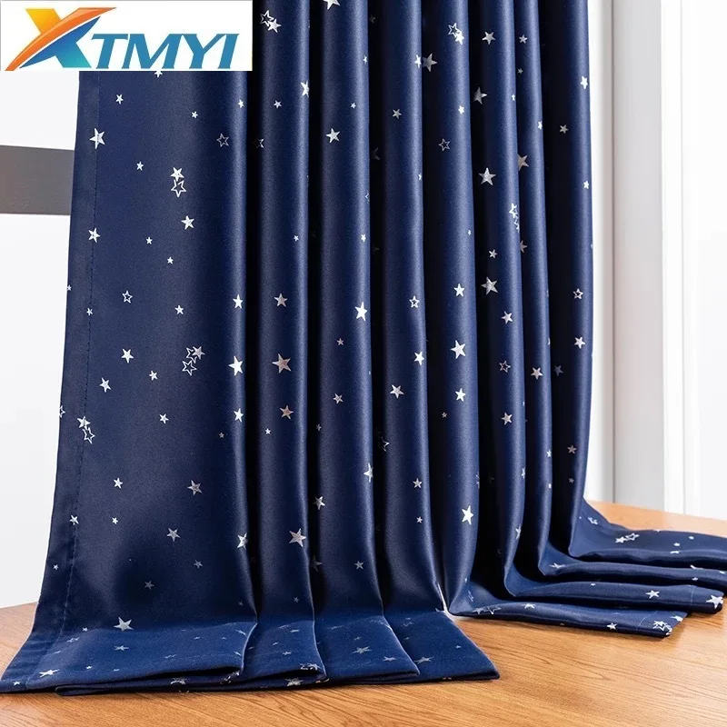 Шторы блэкаут XTMYI для гостиной, голубые занавески со звездами для детей, шторы для спальни для мальчиков и девочек, детские рождественские готовые занавески