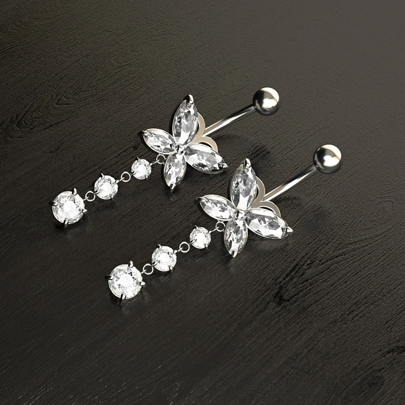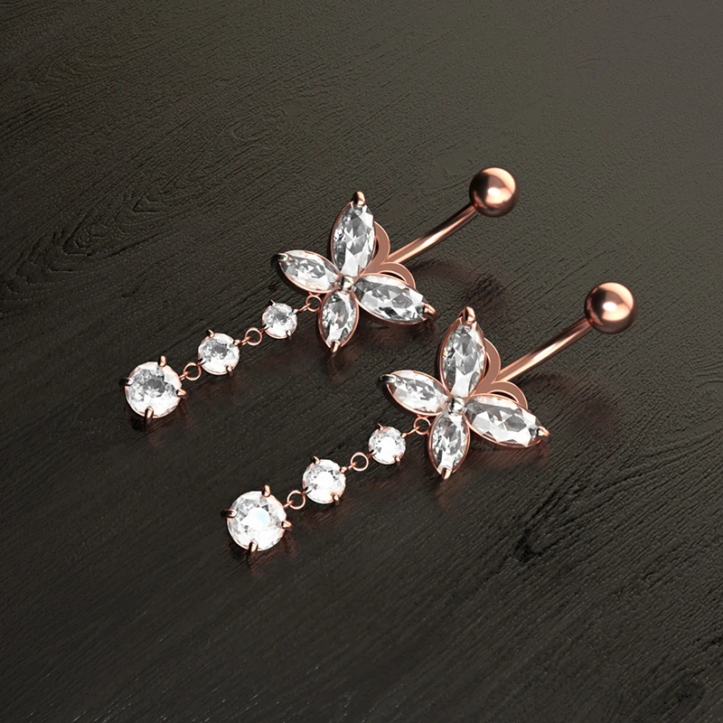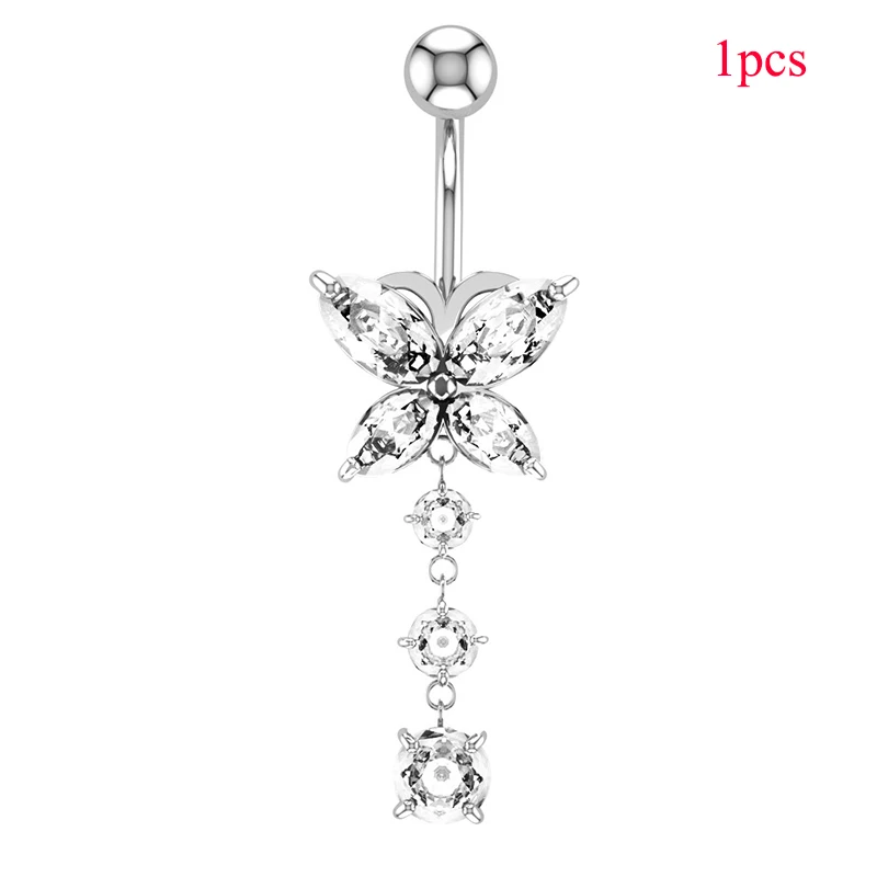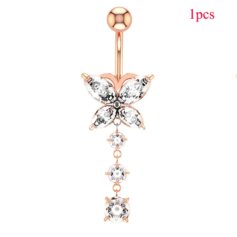 Женское кольцо с пуговицами для живота, циркониевое кольцо с подвеской-бабочкой, ювелирное изделие для пирсинга пупка