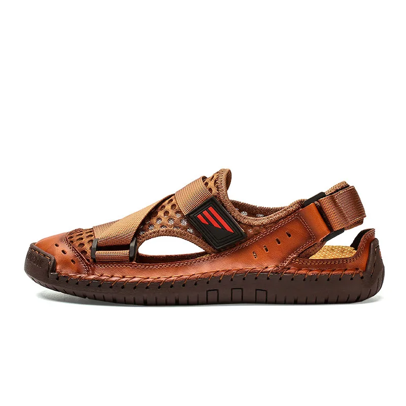 Мужские пляжные сандалии, коричневые повседневные кожаные дышащие босоножки для улицы, большие размеры, лето 2020