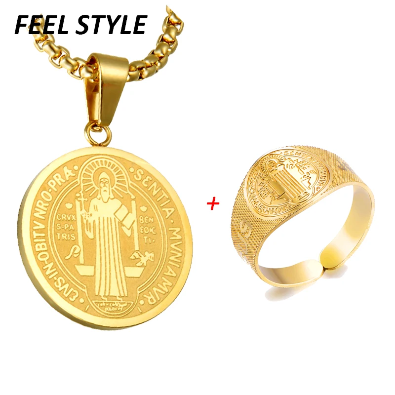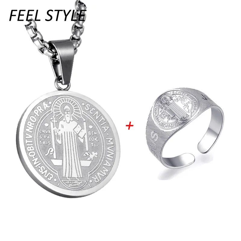 1 Набор Колье из нержавеющей стали с изображением медальона Святого Бенедикта, Иисуса Сан Бенито, Кулон, Ожерелье для мужчин, ювелирные изделия