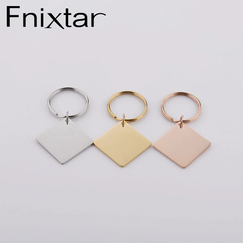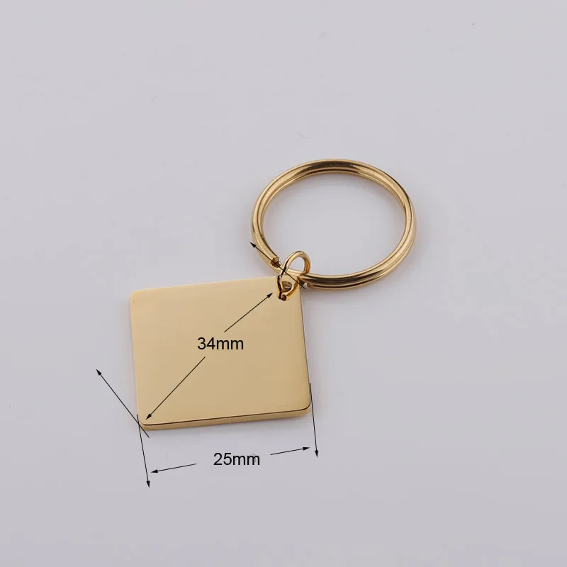Модный брелок для ключей автомобиля, брелок для ключей на заказ с гравировкой и покрытием из нержавеющей стали, квадратный брелок с подвеской в виде растения, брелок