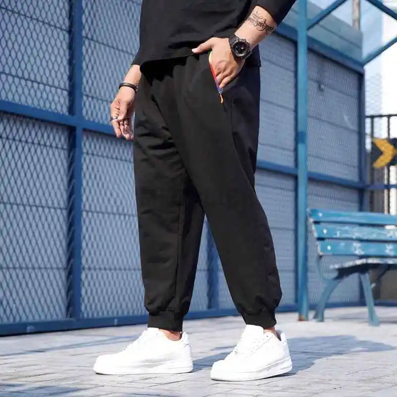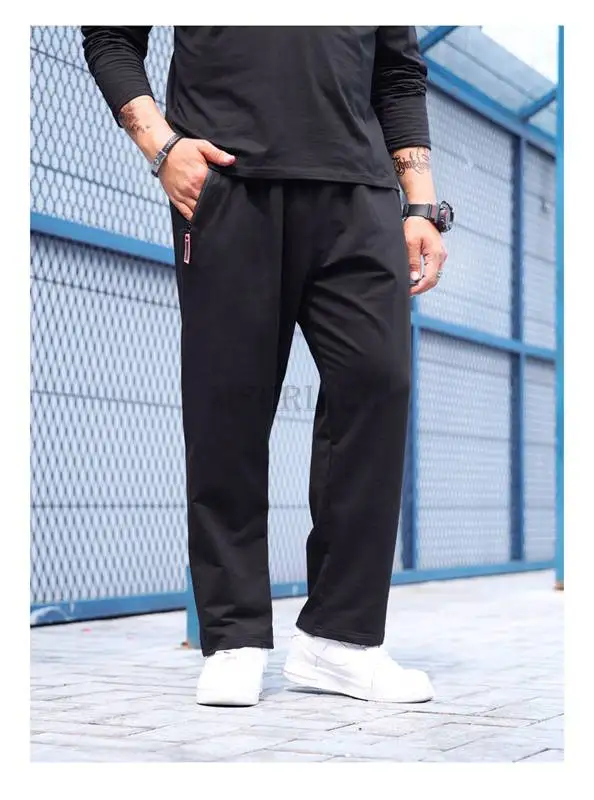 Мужские хлопковые спортивные брюки, эластичные спортивные штаны большого размера на молнии, размер 10XL11XL, вес 150 кг, весна-лето