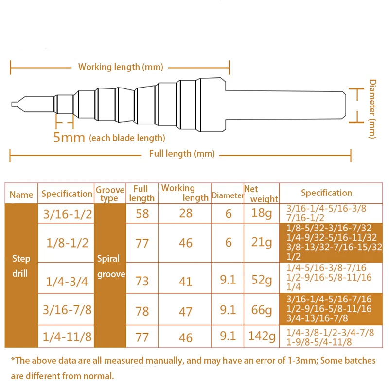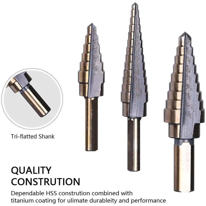 Набор ступенчатых сверл ROSSONIX, из быстрорежущей стали 4241, с титановым покрытием, 5 шт.