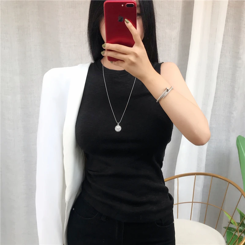 Blusas Mujer De Moda, новинка 2020, корейские жилеты, Женские топы с круглым вырезом, одноцветные летние модные женские повседневные тонкие топы без рукавов, 9267 50