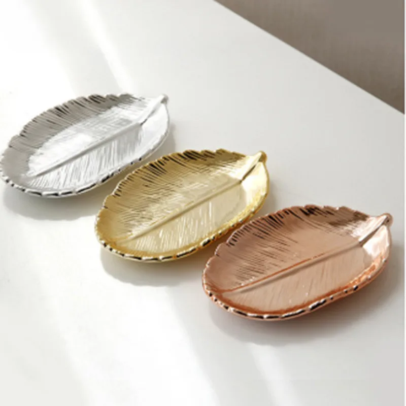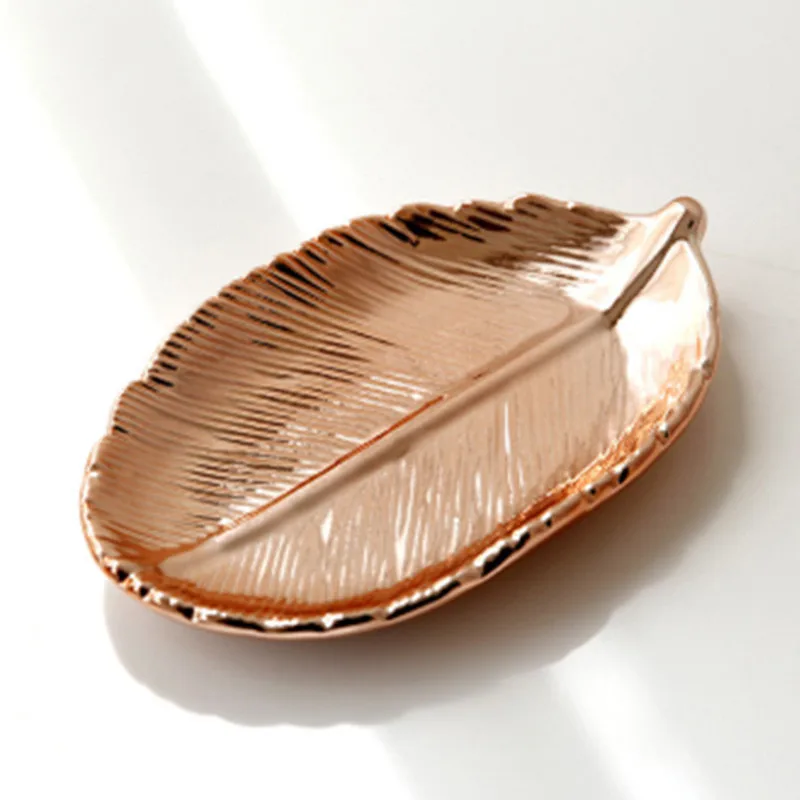 Керамическая тарелка с золотыми листьями, фарфоровая тарелка для конфет, безделушка, ювелирные изделия, поднос для фруктов, тарелка для хранения, посуда, декоративная посуда