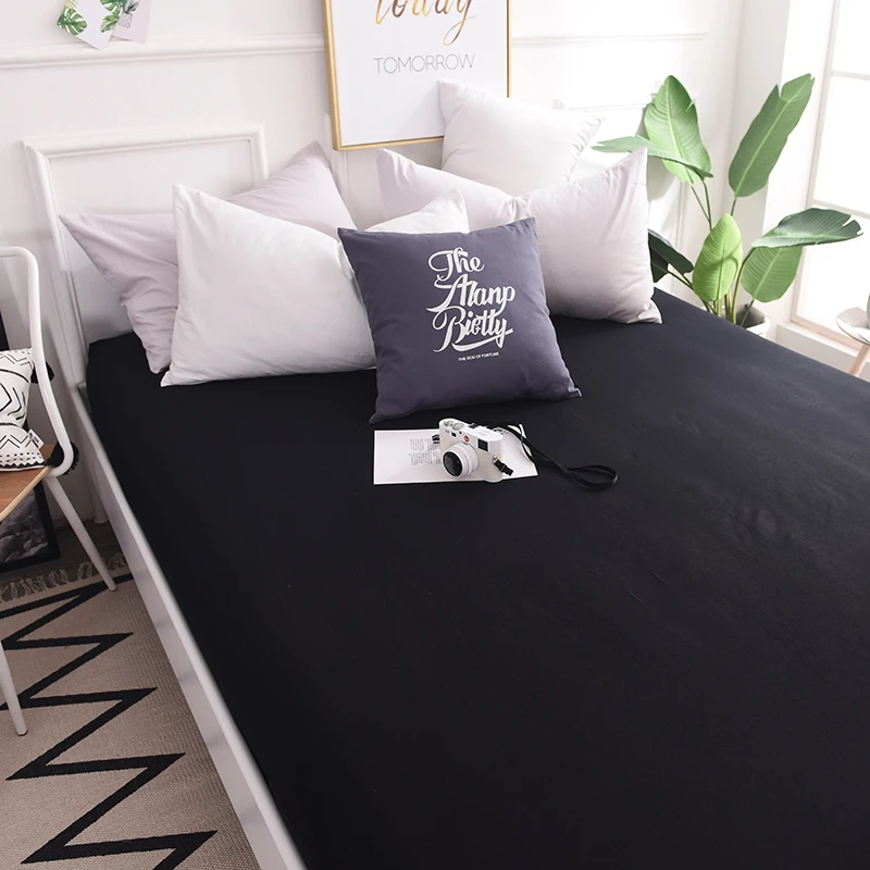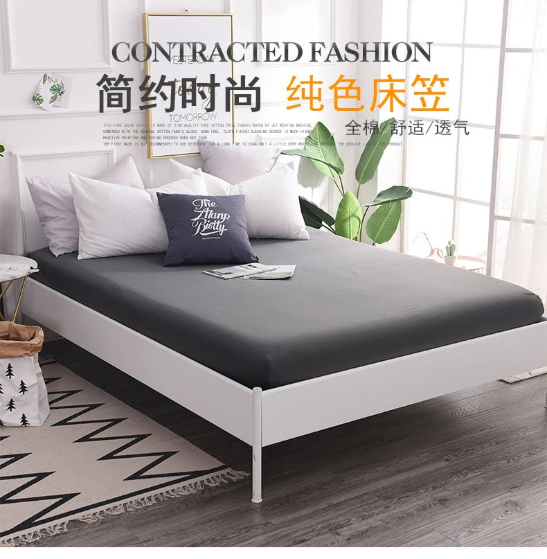 Простыня хлопковая однотонная с резинкой, наматрасник для кровати, доступен во многих размерах