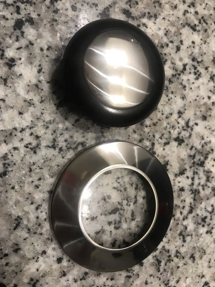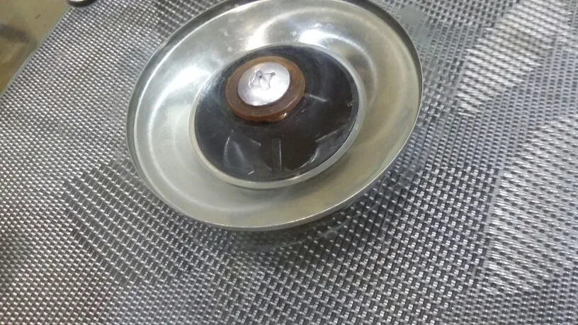 Ручка для крышки подошла. Радость обладания подпортила верхняя металлическая часть: она оказалась с вмятинкой. Мелочь, а неприятно. И не очень понравилось, что в комплекте отсутствует шайба. Болт сам по себе достаточно большой, с большой шляпкой, но по примеру других крышек просится шайба. Разыскала и установила подходящую шайбу, жаль только, что продавец этого не предусмотрел