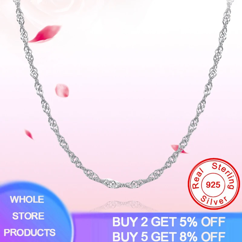YANHUI 100% 925 стерлингового серебра водная волна цепь для женщин 40 см45 см 2,0 мм цепи ожерелье для женщин серебро 925 ювелирные изделия CN003