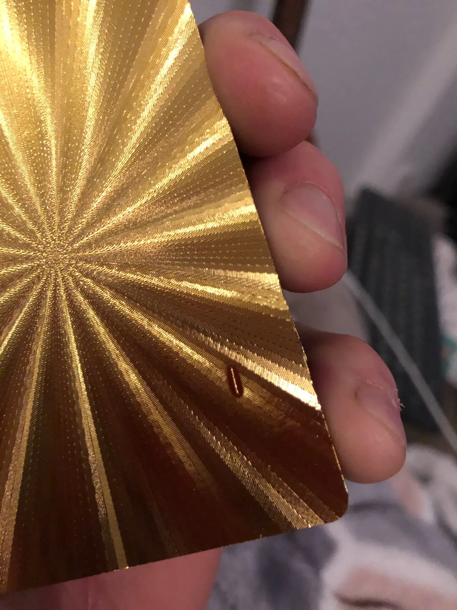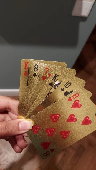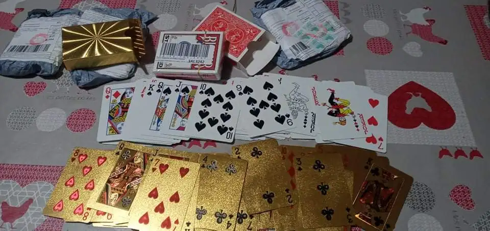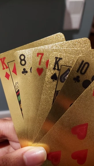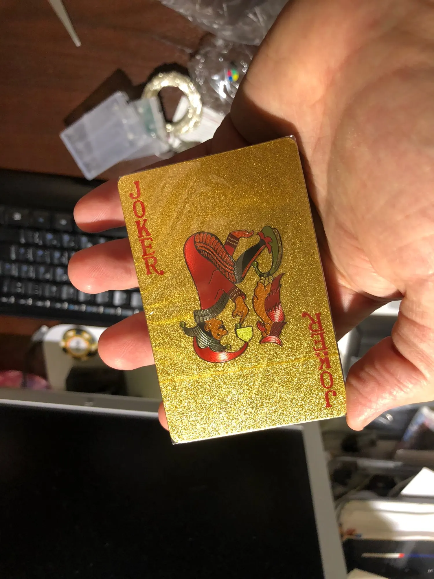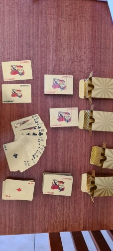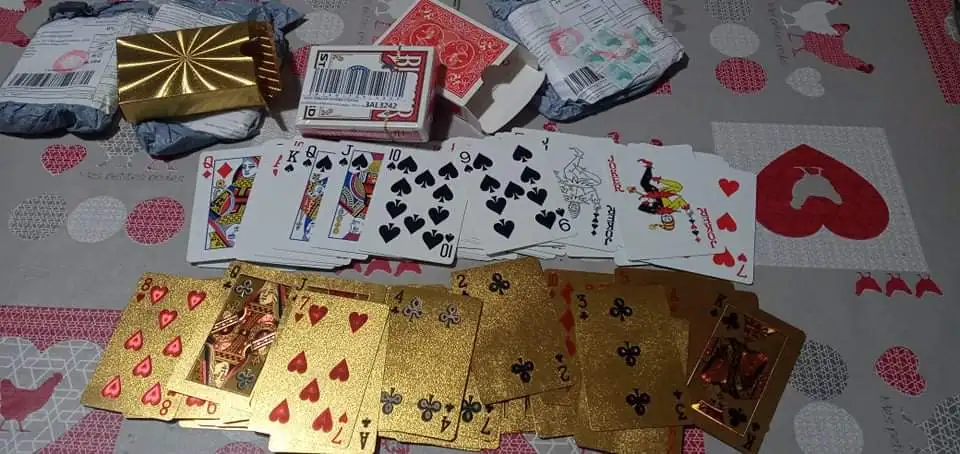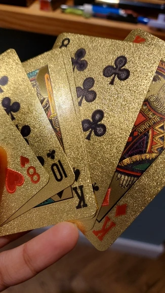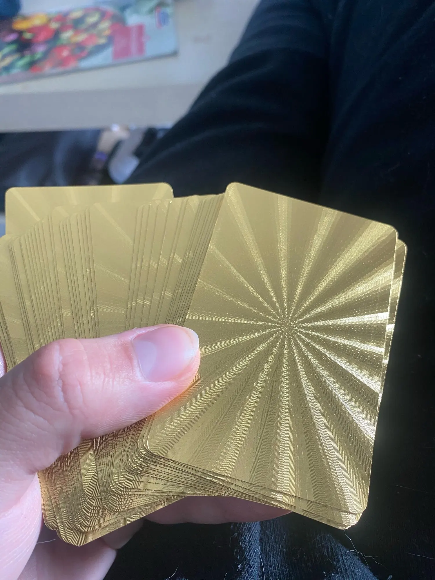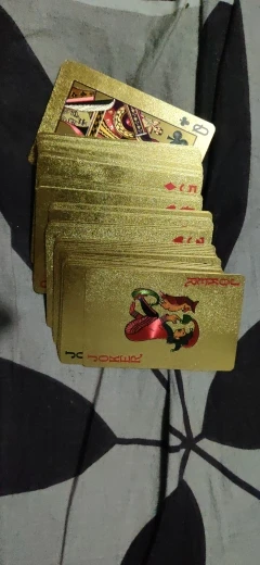 клёвые карты, качество хорошее! всё из пластика(упаковка в том числе). огонь, и пришли быстро. ооочень крутой товар в ооочень приятную цену, ну 92 рубля за упаковку охрененных золотых пластиковых 54х карт прям ни о чем цена. и упакованы были хорошо. блин я прям очень довольна покупкой