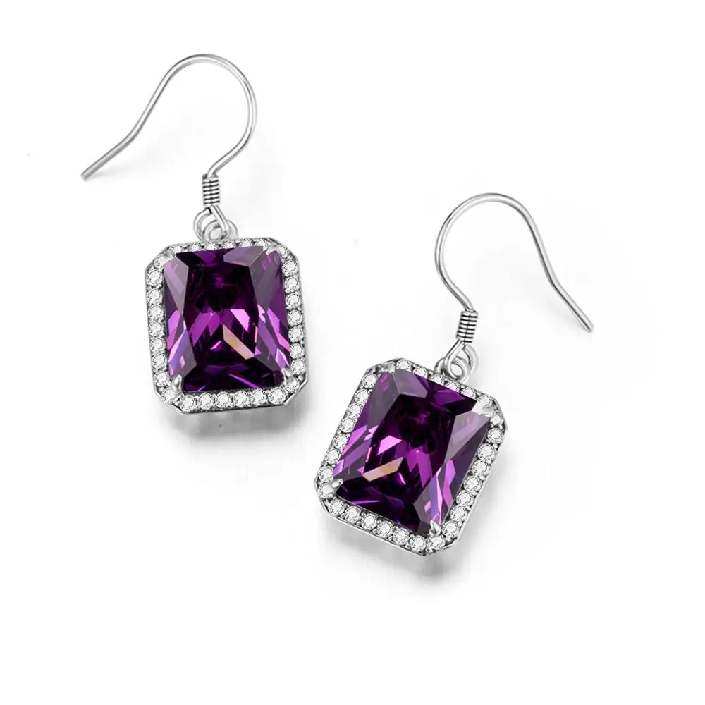 Серьги-подвески Szjinao с фиолетовым камнем для женщин, модные ювелирные изделия с аметистом, 2020 квадратный драгоценный камень с бриллиантами, рекомендуемые серьги в стиле бохо