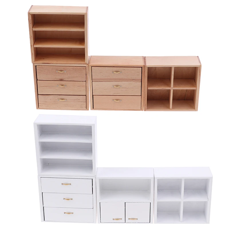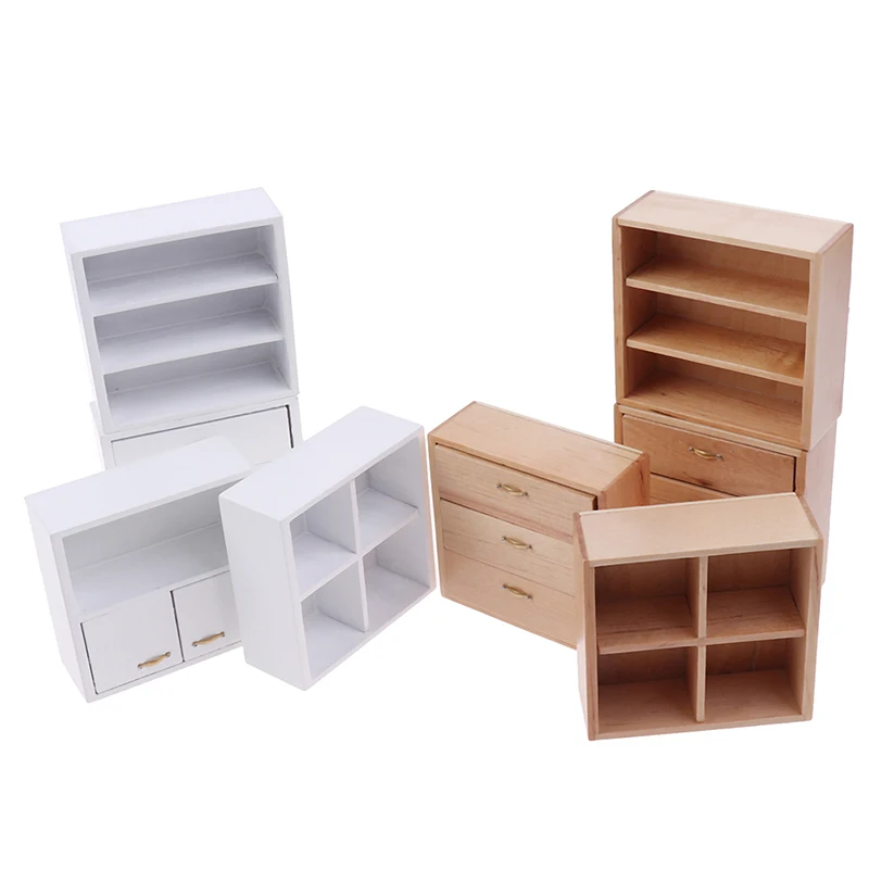 112 миниатюрная мебель для кукольного домика, шкаф для гостиной с 4 секциями, доступны белые и деревянные цвета