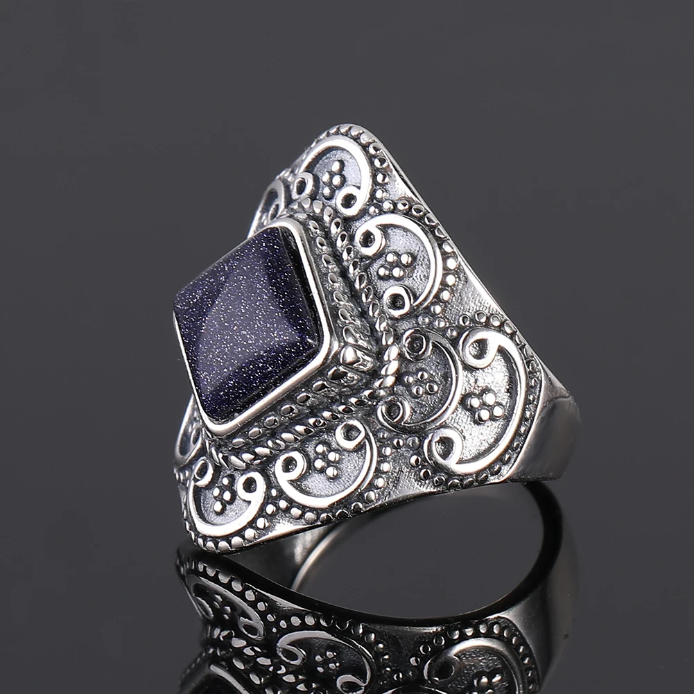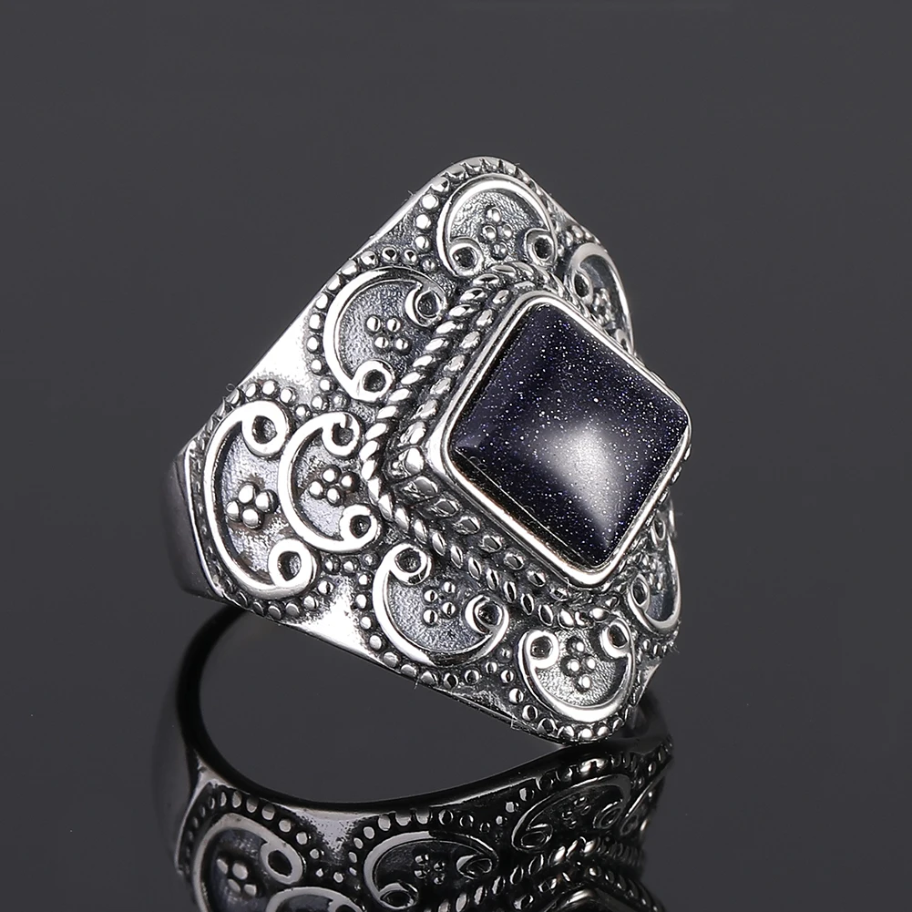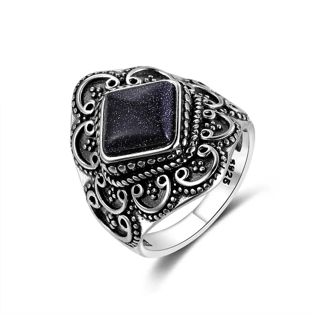 Кольцо женское из серебра 925 пробы, с синим песчаником