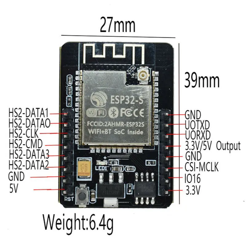 ESP32-CAM-это небольшой модуль камеры. Модуль может работать самостоятельно как минимальная система размером всего 27*40,5*4,5 мм и глубоким спящим током до 6ма. Он может широко использоваться в различных приложениях Интернета вещей. Это идеальное решение для приложений IoT.