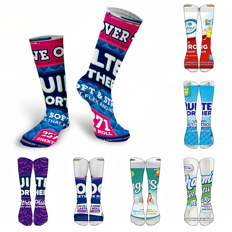 Носки мужские и женские длинные с 3D-принтом, смешные хлопковые цветные до колена, в стиле хип-хоп, Художественная упаковка, теплые осенние