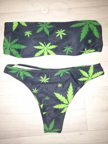 Doginthehole 2021 Модный женский комплект бикини бандо с красочным принтом сорняков летний сексуальный купальник из 2 предметов без бретелек купальный костюм