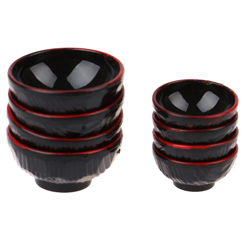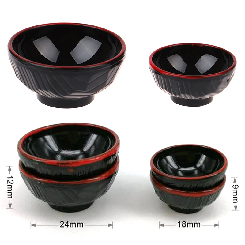 Миниатюрные пластиковые черные чаши для кукольного домика 1:12, 4 шт.