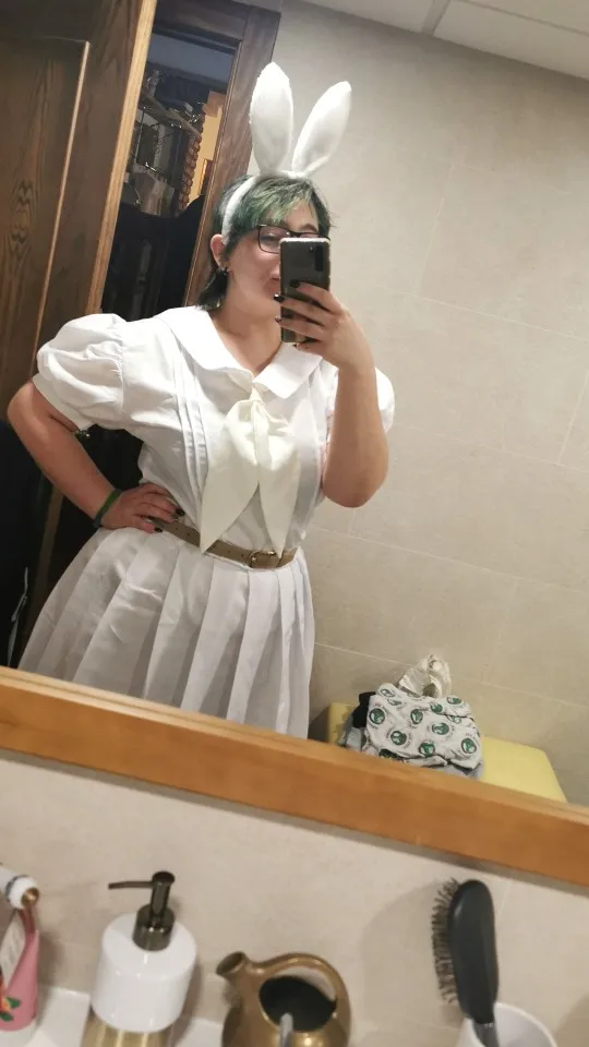 El artículo es exactamente como es descrito, llego en perfectas condiciones. Incluye orejas, cinto, medias, moño y el vestido. Pedí una talla M que calzó perfecto al cuerpo aunque las mangas eran algo anchas (fácilmente lo arreglé) puedo decir que por el precio vale increíblemente la pena, 100% recomendado sin ningún pero.