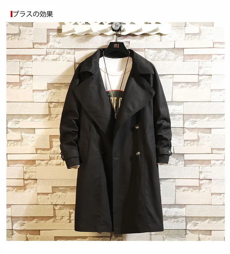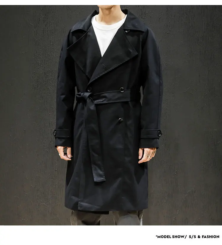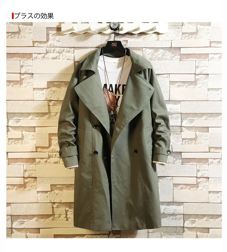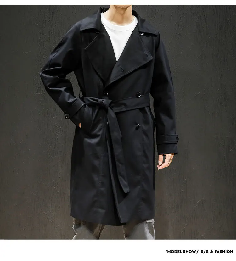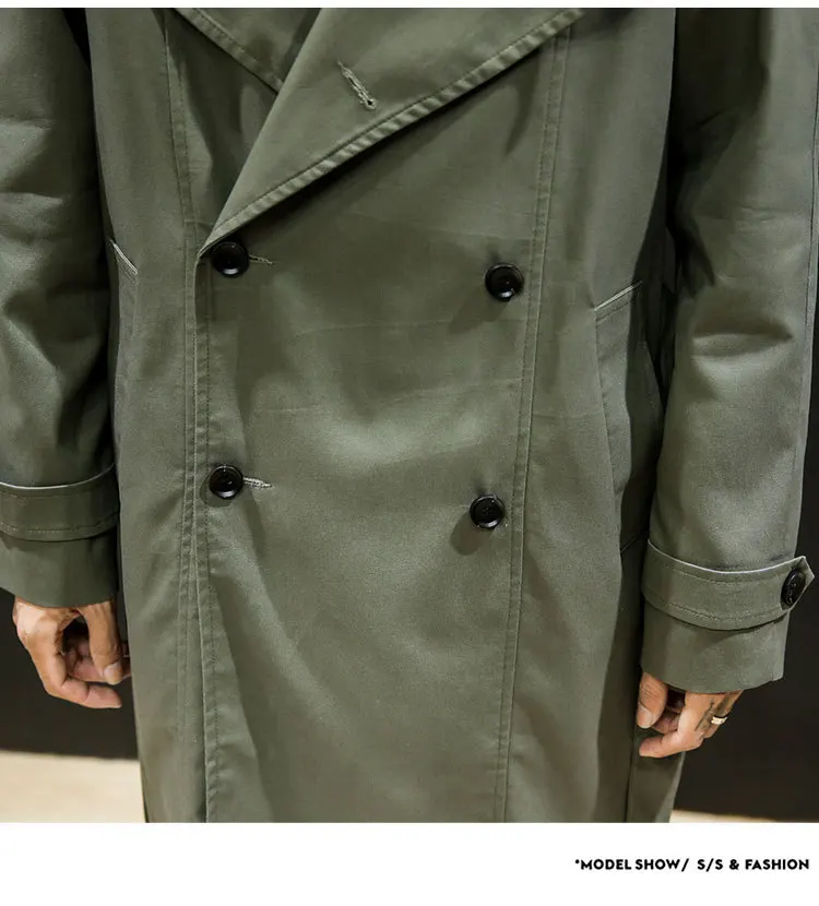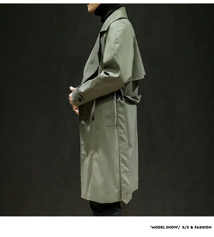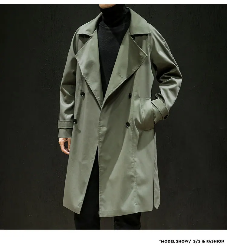 Тренчкот мужской двубортный, осенний, Повседневный, длинный