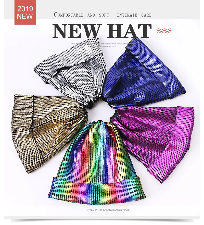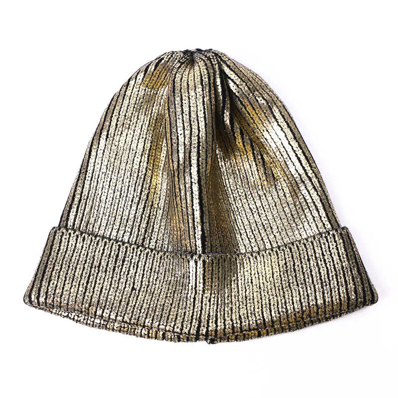 Новые зимние шапки, женские теплые вязанные шляпы, модные шапки, шапки для женщин, бронзовая золотистая и серебристая шапка, подарок, оптовая продажа