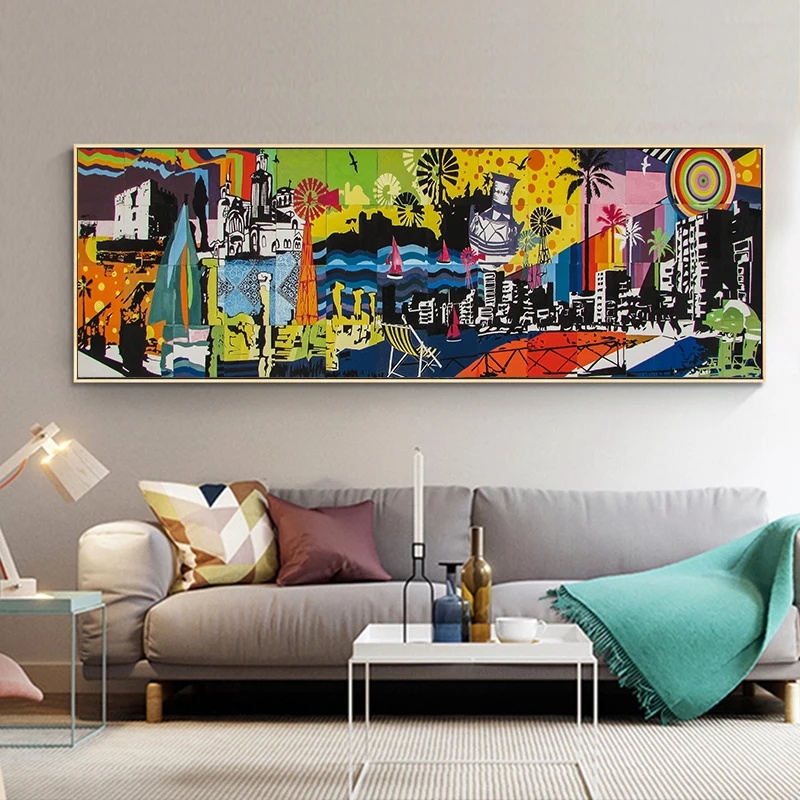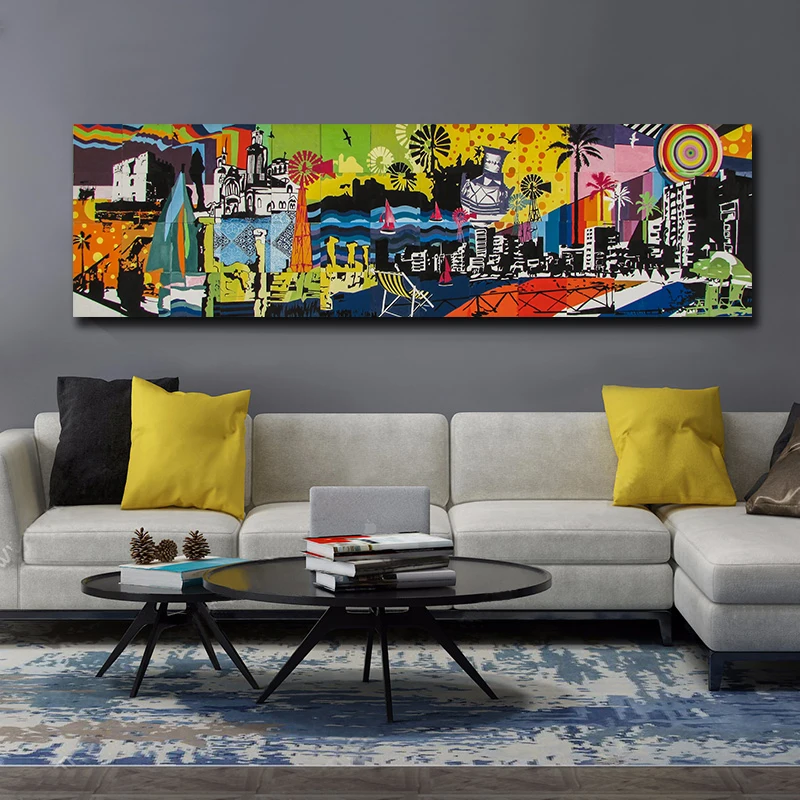 Абстрактный городской пейзаж, настенные картины на холсте, Современные поп-картины с граффити, декоративные картины для украшения гостиной