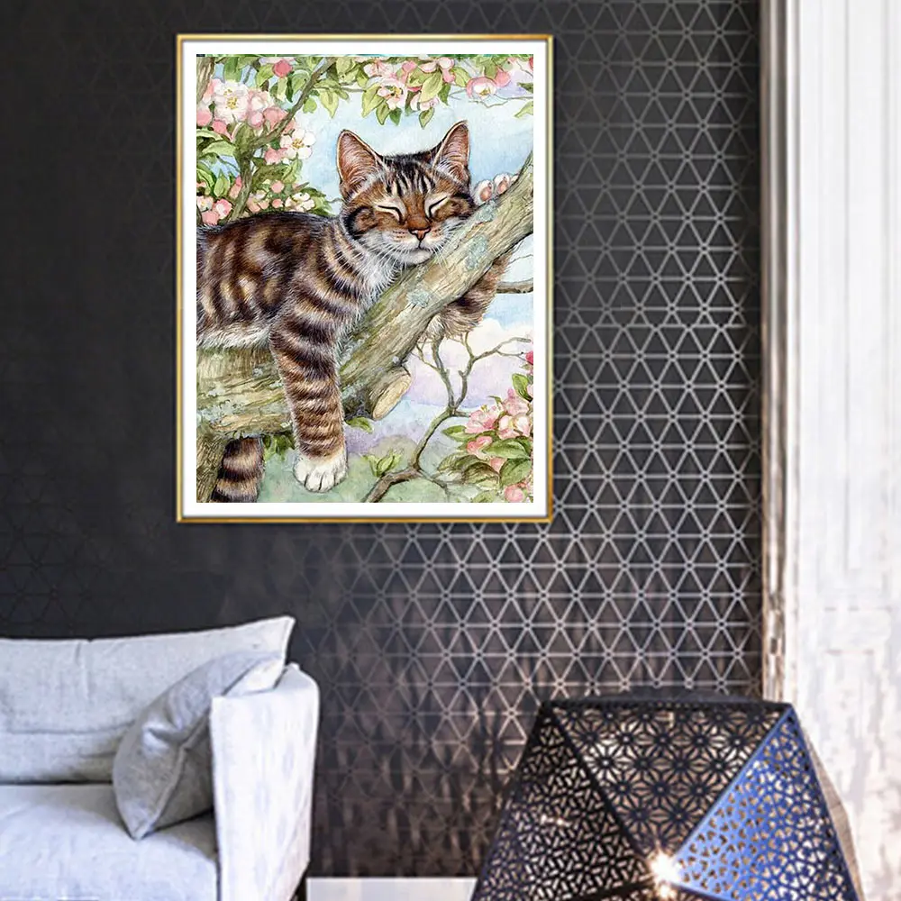 Кошка Спящая на дерево Алмазная картина животное круглая полная дрель Nouveaute DIY мозаика вышивка 5D Вышивка крестом домашний декор