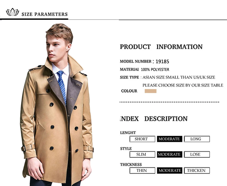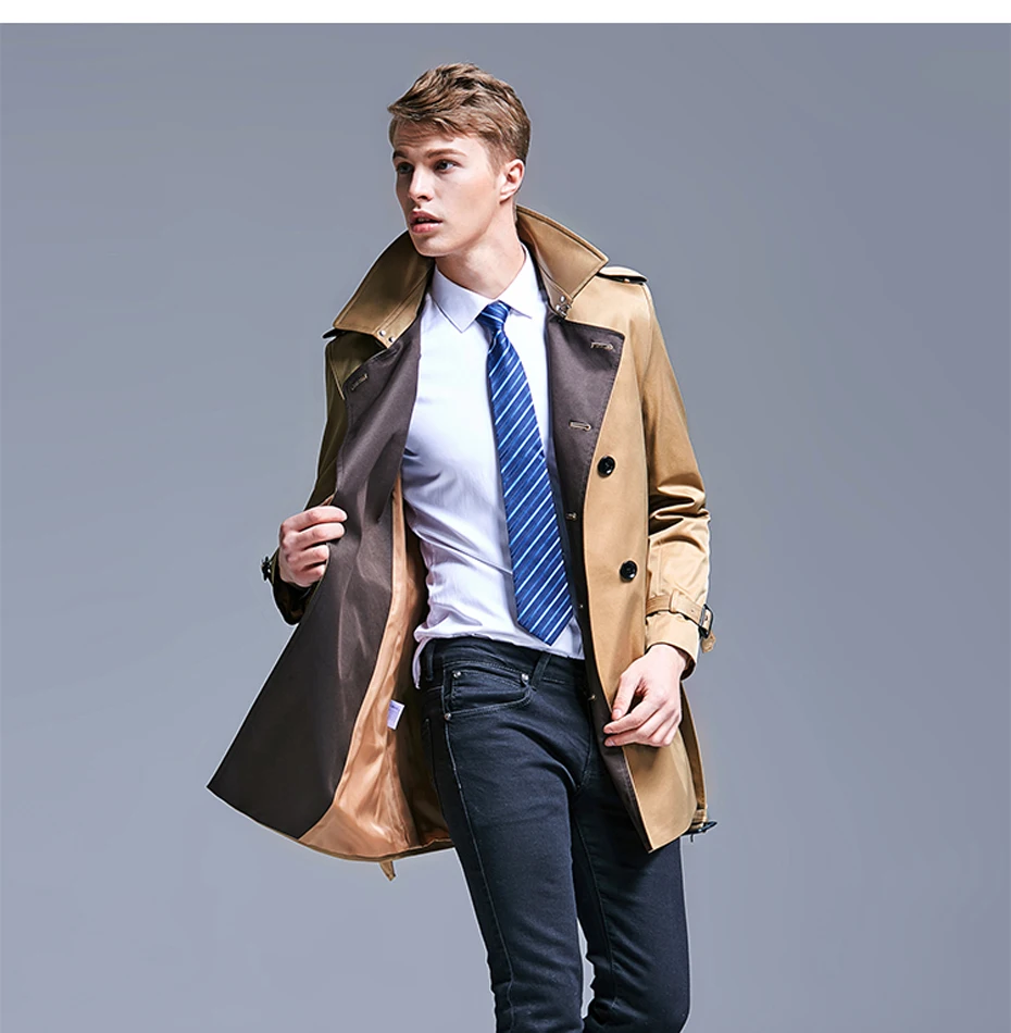 Мужской плащ из полиэстера, Длинная ветровка в деловом стиле, S-5XL...