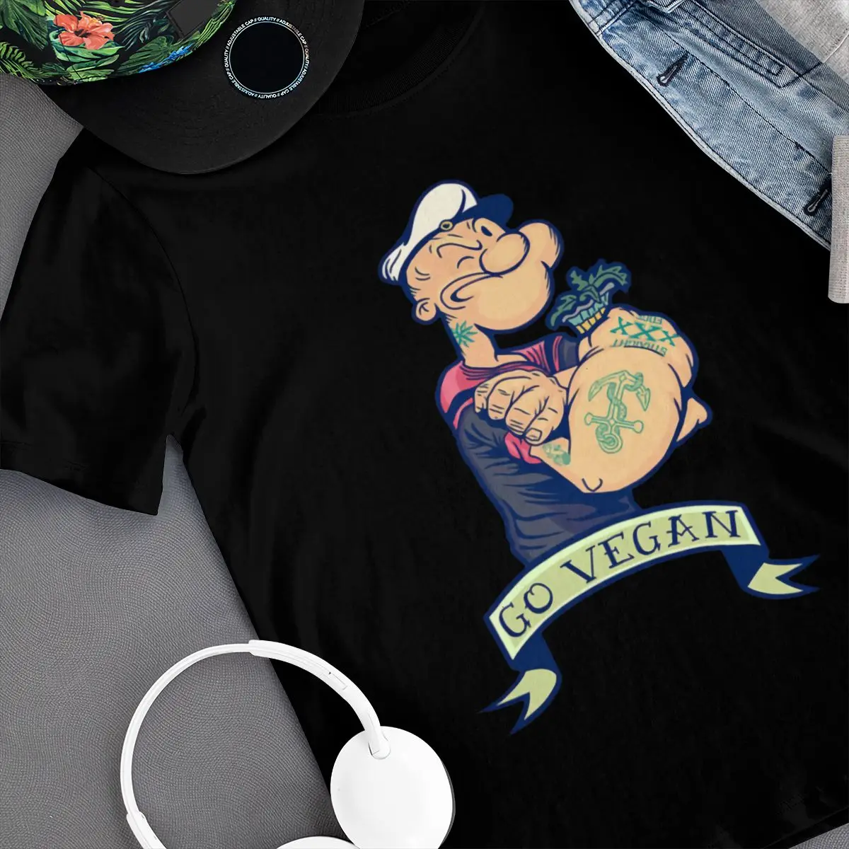 Футболка Popeye, футболка для веганов, футболка с коротким рукавом, уличная одежда, веселая Женская футболка из хлопка с принтом