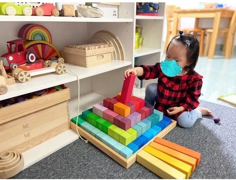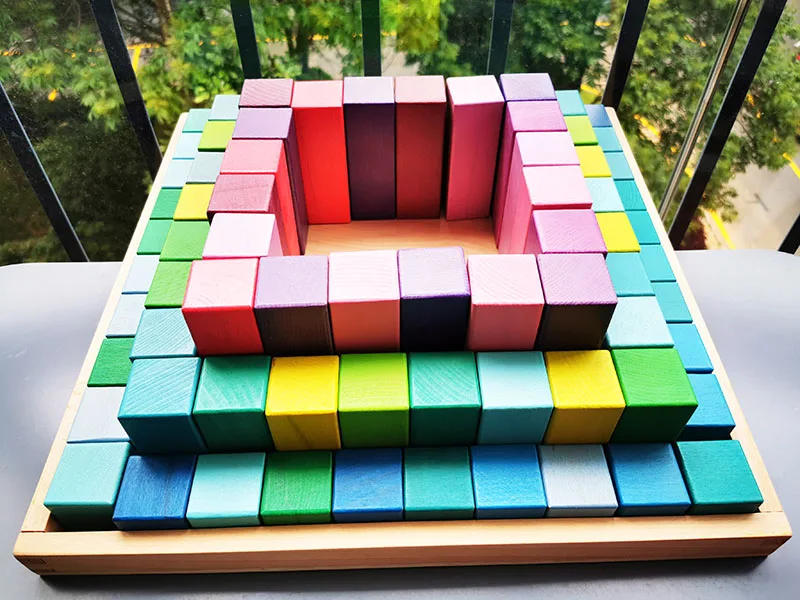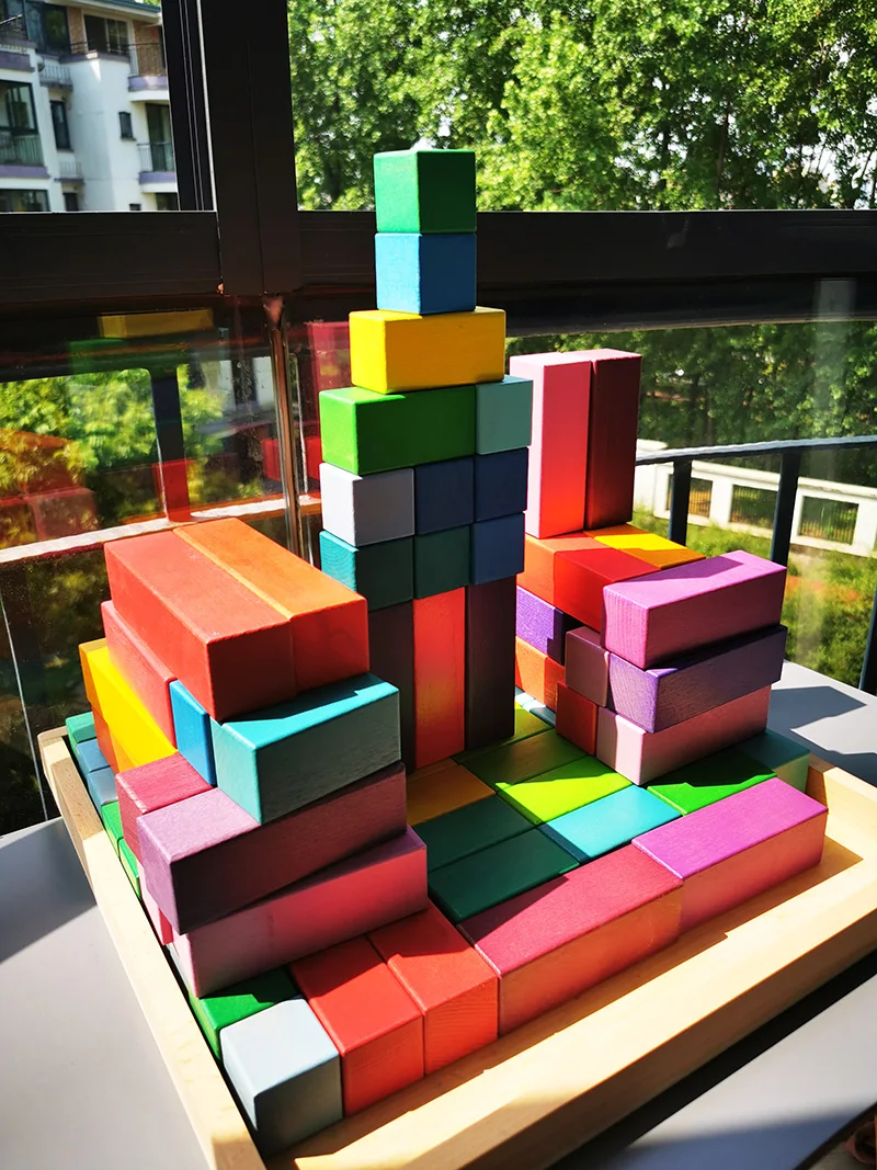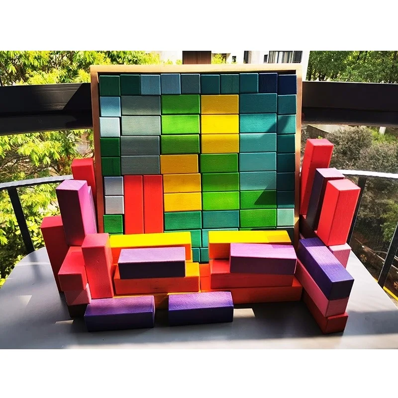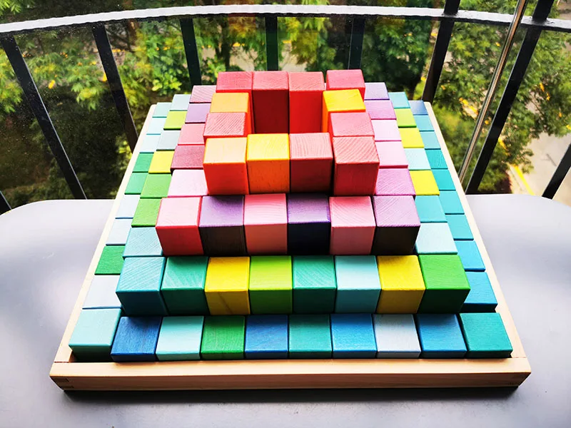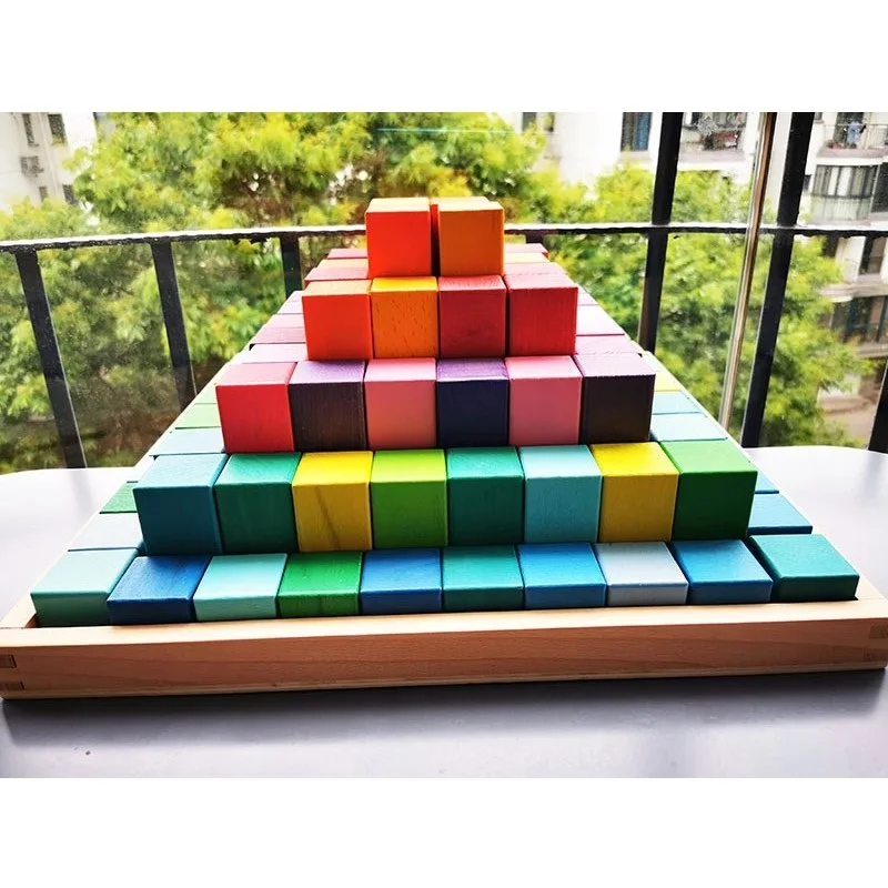 100 шт., детский Деревянный конструктор Радужная Пирамида