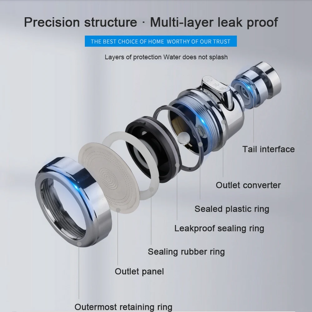 Смеситель для кухни с фильтром, 3 уровня регулировки, вращение на 360 градусов, экономия воды, аксессуары для ванной комнаты