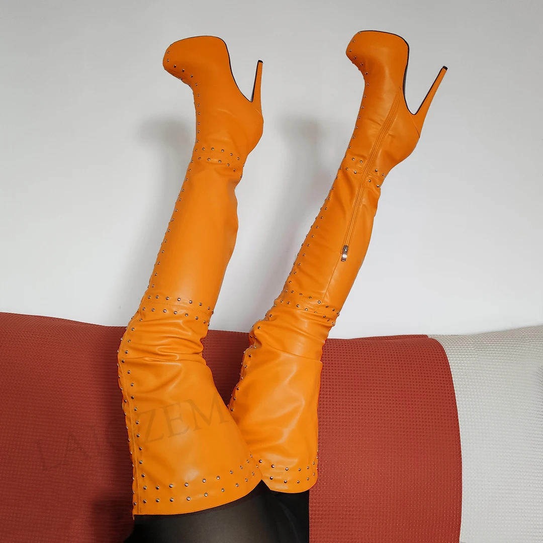 LAIGZEMсексуальные женские сапоги до бедра, высокие сапоги на молни...