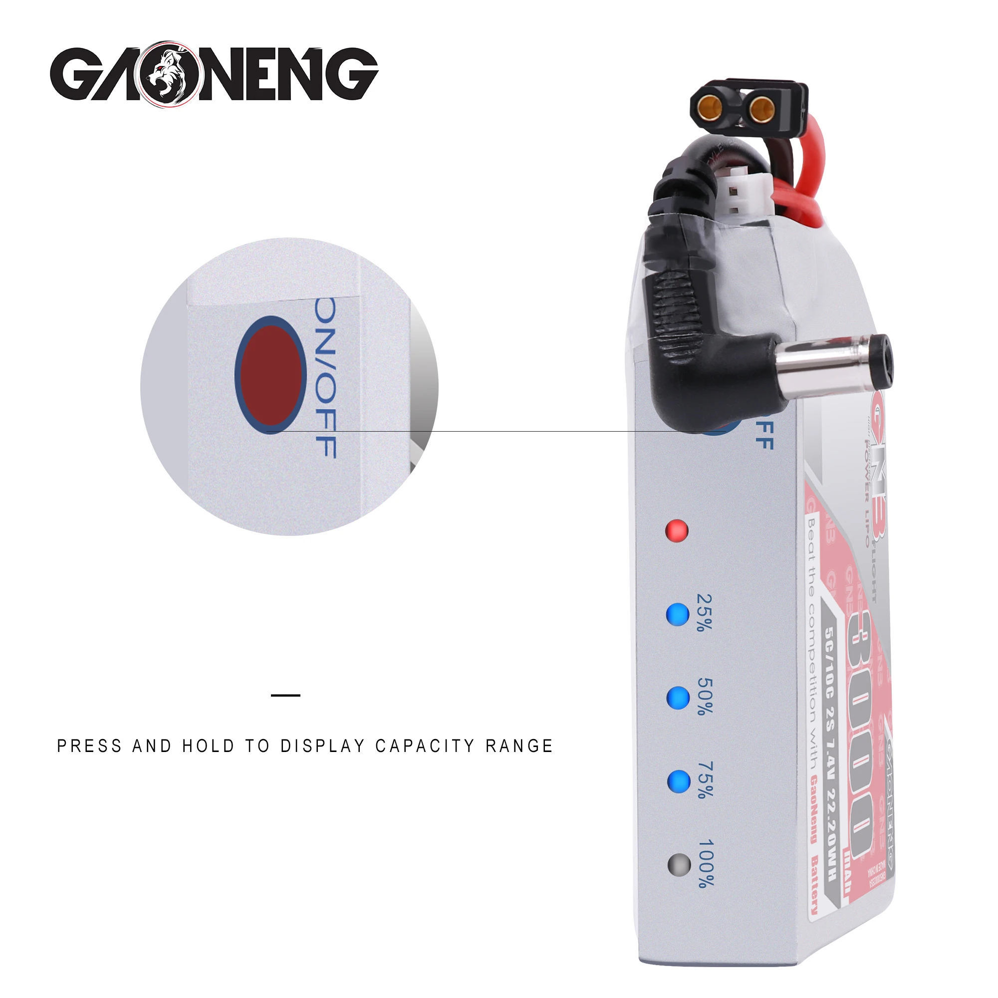 Индикатор заряда батареи Gaoneng GNB 3000 мАч 2S 5C 7,4 В Lipo для очков Fatshark Dominator Skyzone Aomway FPV Glasses RC Drone