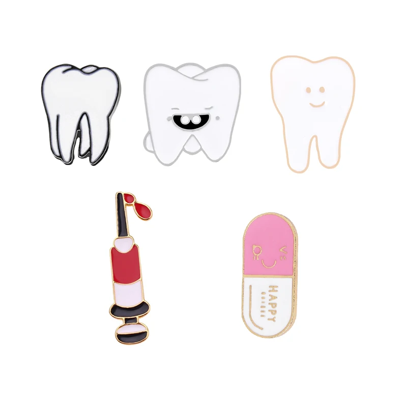 Мультяшный шприц розовая пилюля эмалевые булавки улыбка брошки в форме зуба медицинский орган металлический значок джинсовая сумка отворот булавка Ювелирные изделия Подарки для детей
