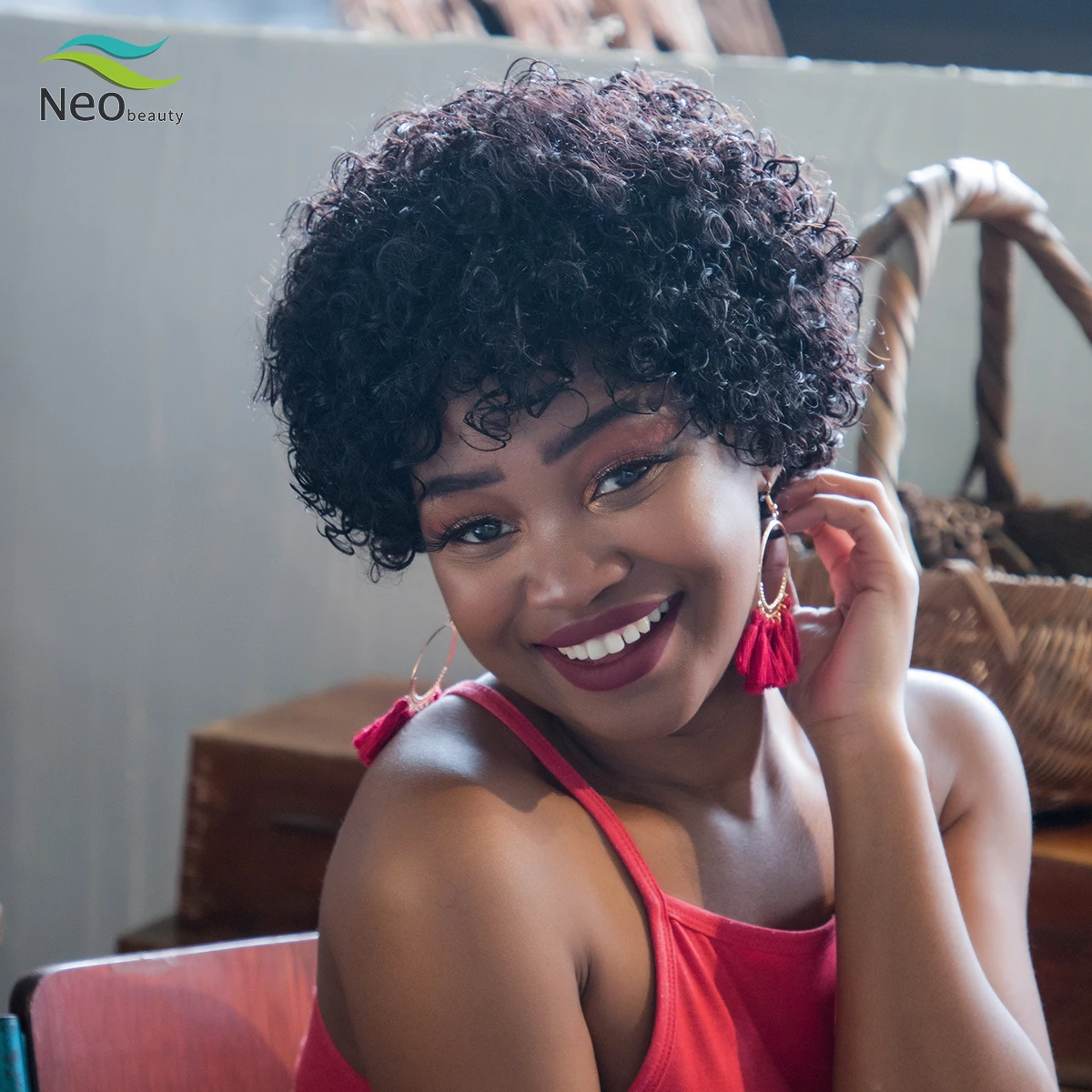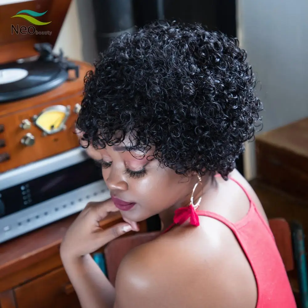 Парик из натуральных волос для чернокожих женщин, короткий, невидимый, кудрявый