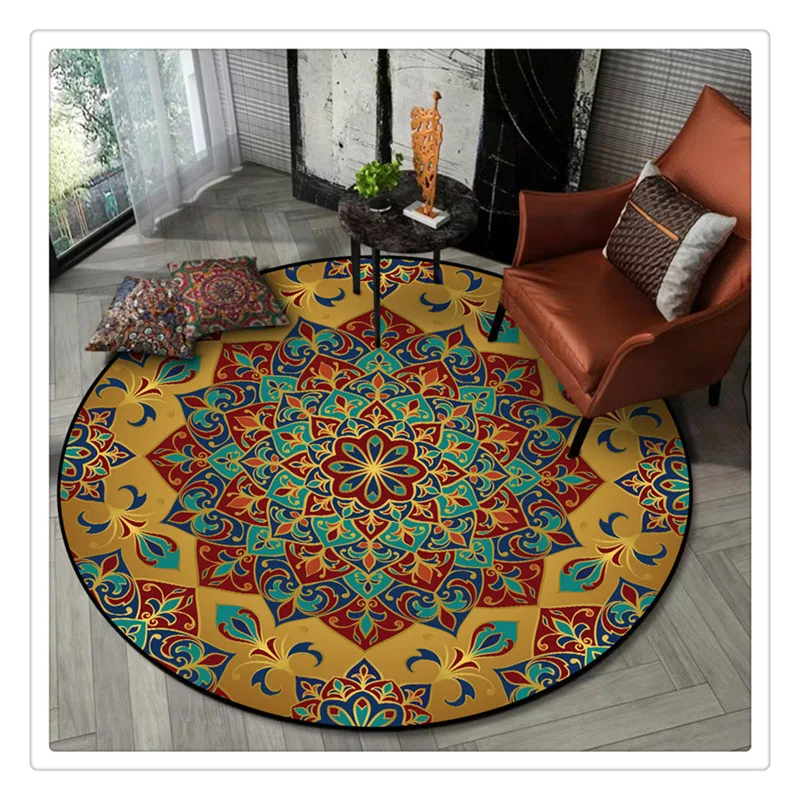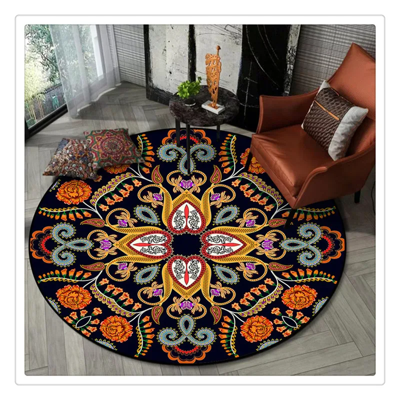 Круглый коврик в богемном стиле ретро персидский этнический геометр...