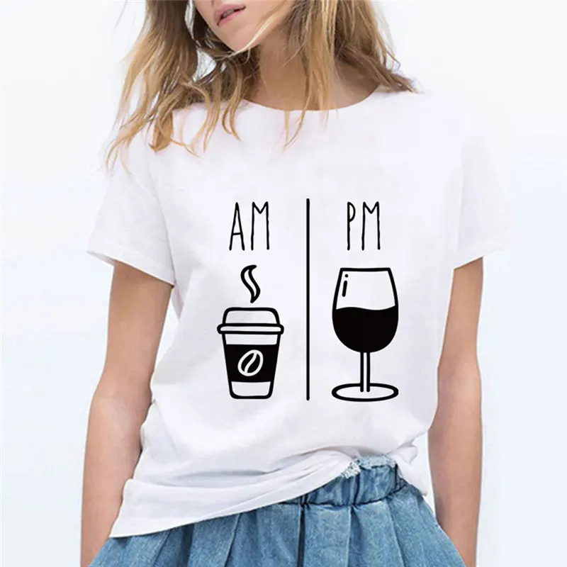 Высокое качество Женская футболка AM кофе PM красное вино принтом Harajuku футболка с изображением якоря; Модная Милая футболка Ropa Mujer крутой костюм с футболкой в Корейском стиле