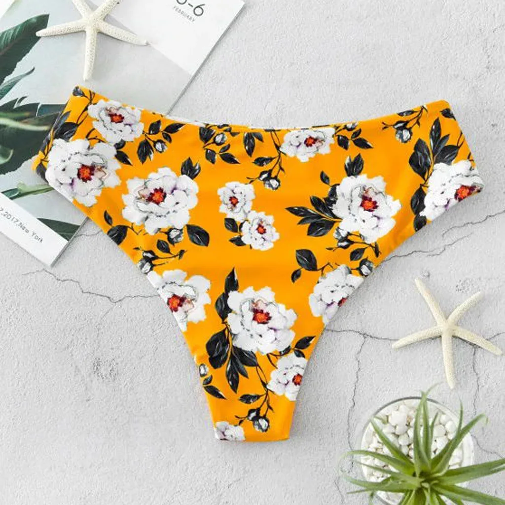 Сексуальные летние женские стринги с принтом, плавки с высокой тали...