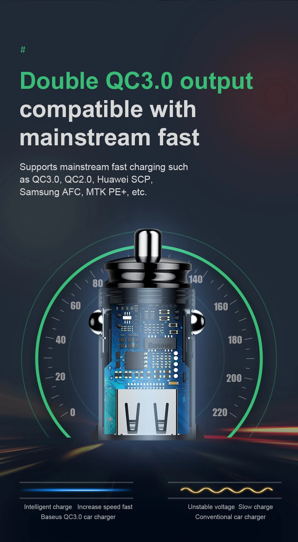 Автомобильное зарядное устройство Baseus, USB-прикуриватель, быстрая зарядка 4,0 QC3.0 PD Type C, быстрая зарядка телефона, автомобильное зарядное устройство, аксессуары