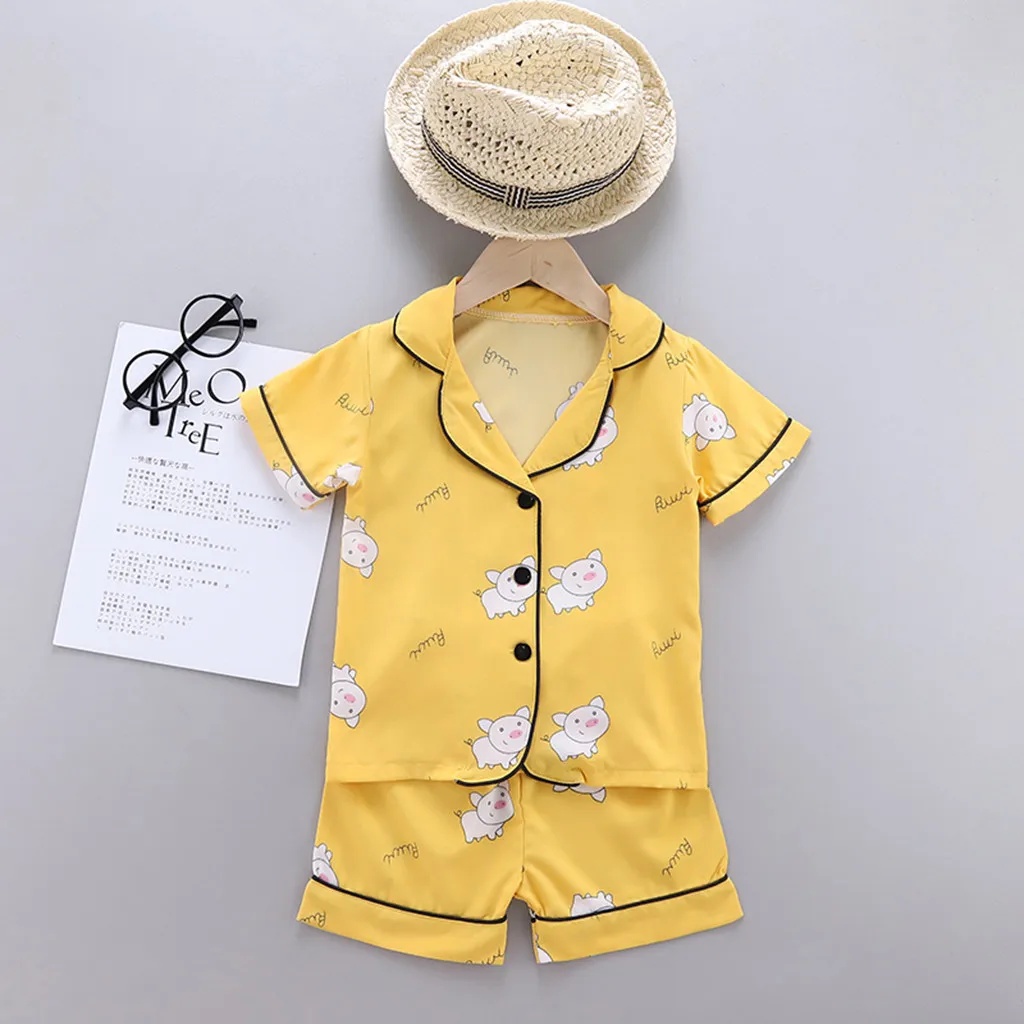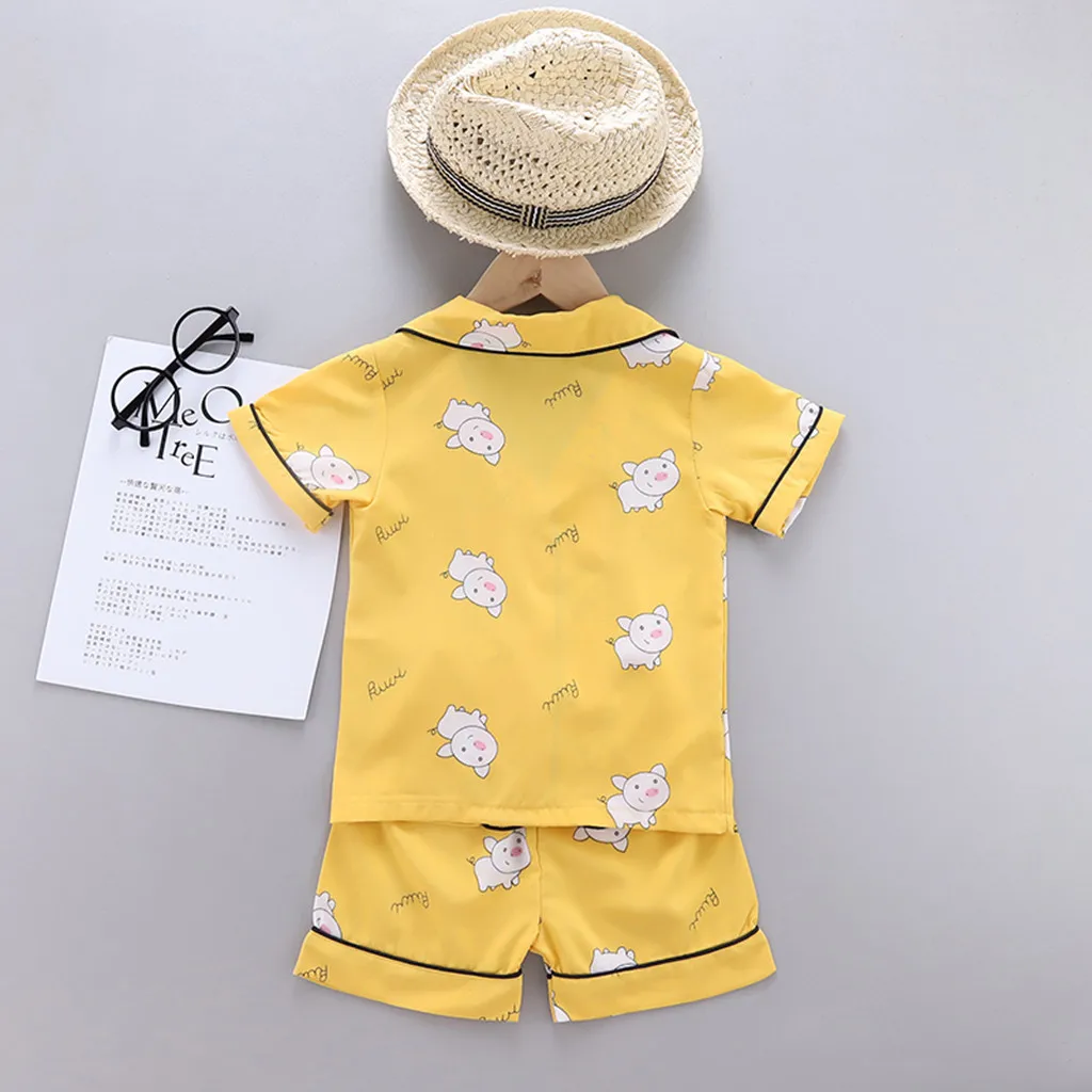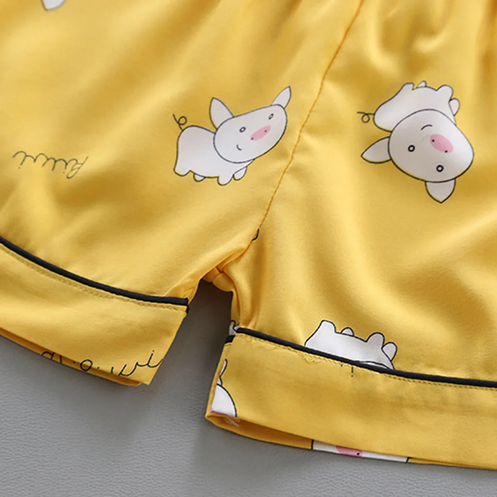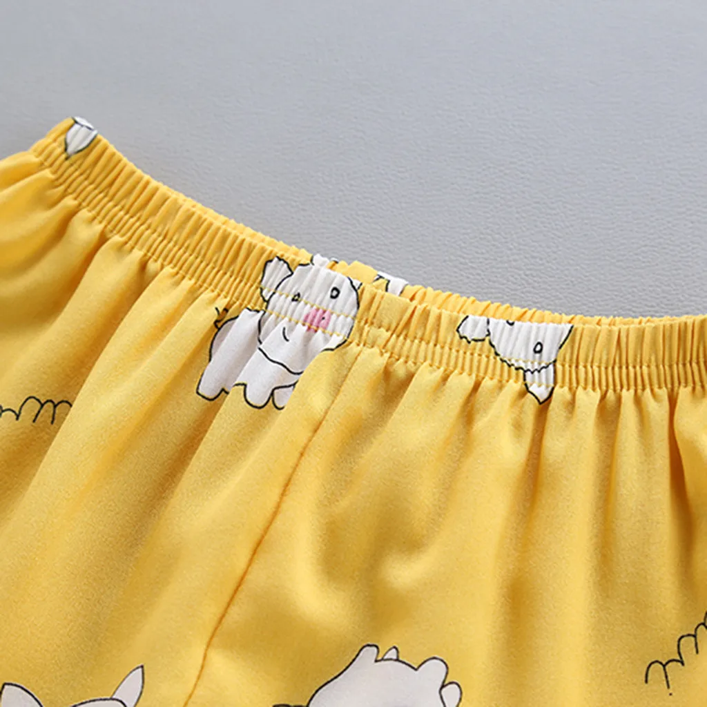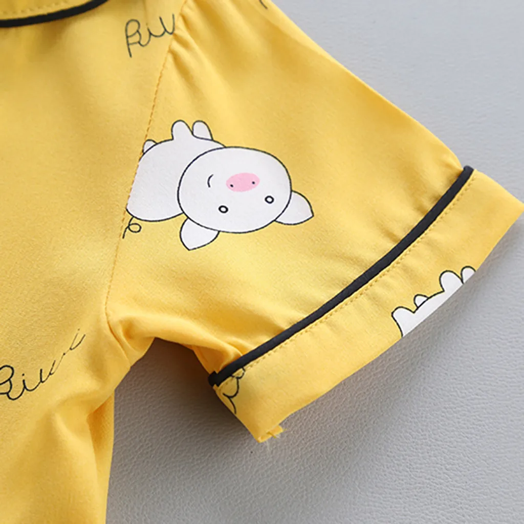 Топы с короткими рукавами и рисунком для маленьких мальчиков и девочек + шорты, пижамы, одежда для сна