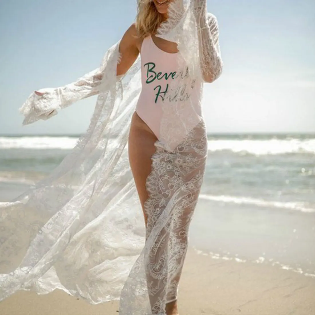 Женское длинное кимоно с блестками, кружевной кардиган, шифоновая блузка, пляжный топ